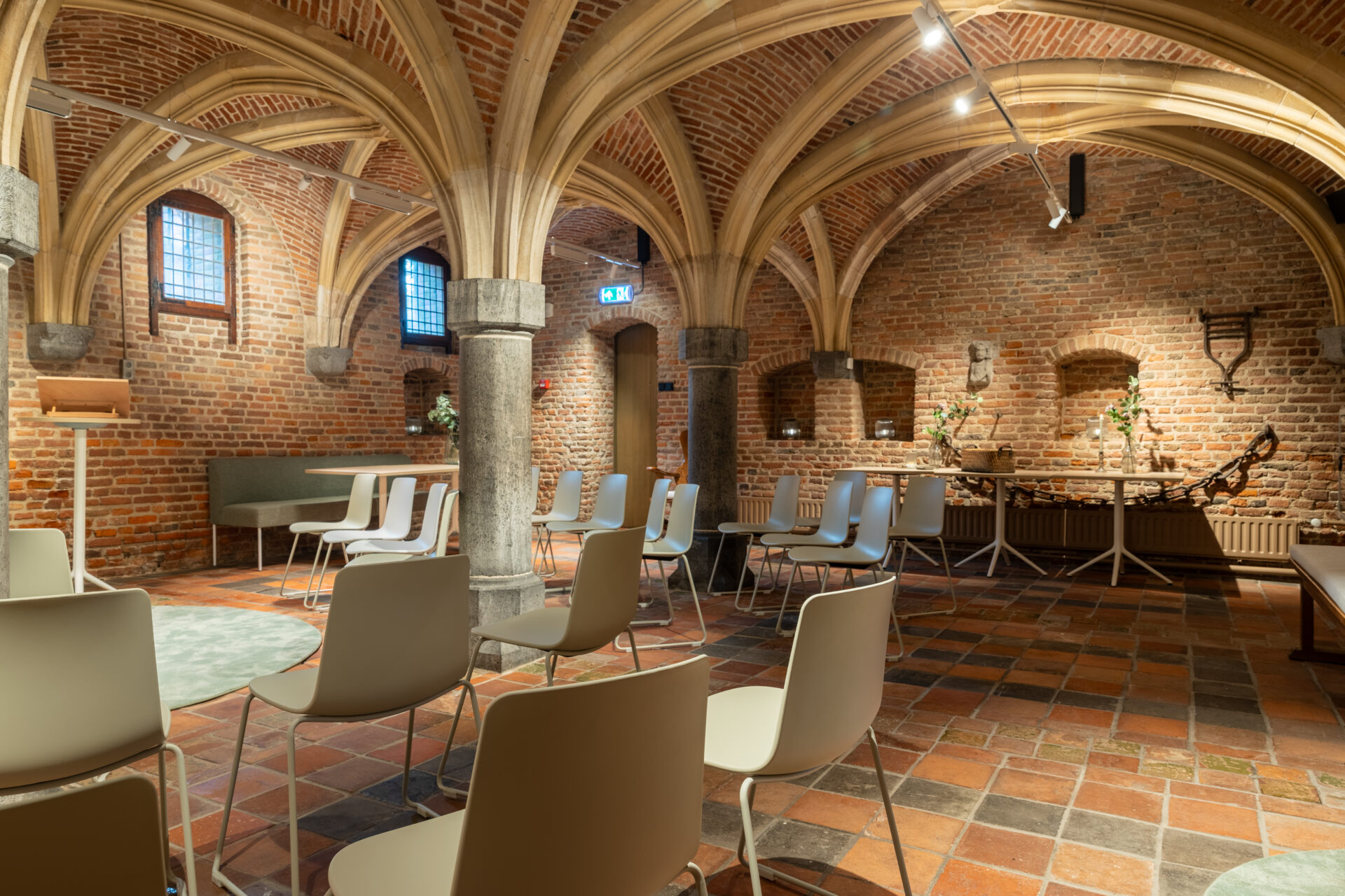 De oude raadskelder werd aanvankelijk als overdekte markthal gebruikt, waar vlees, eieren en boter werden verkocht. De gewelfde kelder ligt nu onder het maaiveld, maar was eigenlijk de begane grond van het raadhuis. Door ophoging van de markt veranderde het in een kelder. Het is een tweebeukige kelder met vlakke kruisribgewelven, in het midden rustend op zuiltjes met eenvoudige basementen en kapiteeltjes, tegen de wanden op kraagstenen. De ruimte is jarenlang gebruikt voor de vergaderingen van de gemeenteraad (tot 1982). Momenteel is het een heel populaire locatie voor het voltrekken van huwelijken en is ook te huur voor vergaderingen e.d. Onlangs is de raadskelder geheel heringericht en voorzien van nieuw eigentijds meubilair. In de raadskelder is tijdens het Erfgoedweekend een doorlopende powerpoint presentatie te zien over de historie van het raadhuis. Op zondagmiddag verzorgt Roel Timmers een optreden met akoestische muziek. Klik hier om terug te gaan naar alle deelnemende monumenten en activiteiten in de gemeente Oirschot.