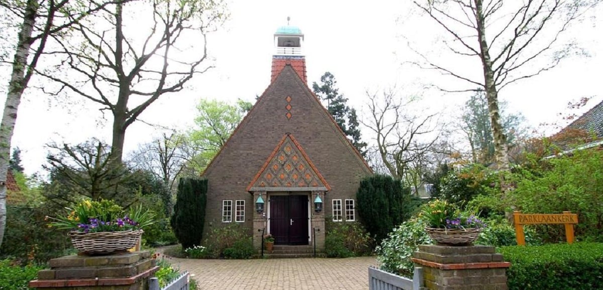 De Parklaankerk is in 1929 gebouwd in de stijl van de Amsterdamse School, met rode bakstenen, een pannen zadeldak en een houten dakruiter (torentje) met luidklok. Er wordt gewerkt aan isolatie van het gebouw en vrij maken van fossiele brandstoffen. De tuin is duurzaam ingericht: open toegankelijk, een regenzuil voor bewatering, zitbanken voor rust en bezinning, een bijenhotel. De flora verwijst naar Bijbelse of volks-Bijbelse en/of mythologische verhalen. Achtergrond informatie: De Parklaankerk is een gemeentelijk monument, gebouwd in de Amsterdamse Schoolstijl in 1929. Het is een eenvoudig, maar lieflijk zaalkerkje onder een pannen zadeldak. Het heeft geen toren, wel een dakruiter met houten opbouw en luidklok. Het gebouw is eigendom van de Nederlandse Protestantenbond, een vrijzinnige geloofsgemeenschap die in 1924 is opgericht. De Parklaankerk biedt graag aan jong en oud een podium voor kerkdiensten en samenkomsten op het gebied van religie, muziek, films en andere kunst en cultuur. Zij opent met veel plezier de deuren voor bezoekers. Daarnaast is er een speciale folder gemaakt over de geschiedenis van dit kerkje en welke ontwikkelingen er zich in de deze kerk hebben voorgedaan.