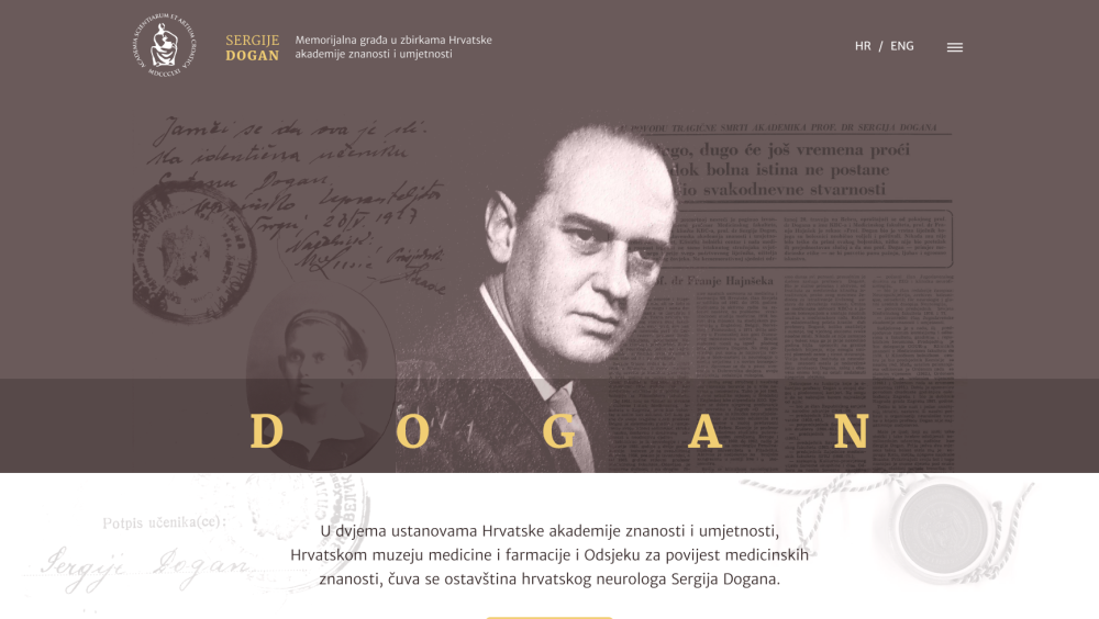 A VIRTUAL EXHIBITION / "Sergije Dogan – memorijalna građa u zbirkama Hrvatske akademije znanosti i umjetnosti” (Sergije Dogan - historical material in collections of the Croatian Academy of Sciences and Arts)