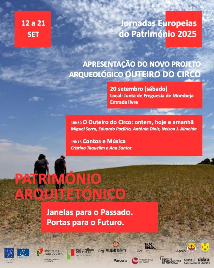 Sessão de apresentação do novo projeto de investigação arqueológica do Outeiro do Circo (Mombeja, Beja), que contará com uma conferência sobre o historial dos trabalhos neste povoado do Bronze Final e sobre os objetivos futuros. A iniciativa terminará com uma sessão de contos e música.