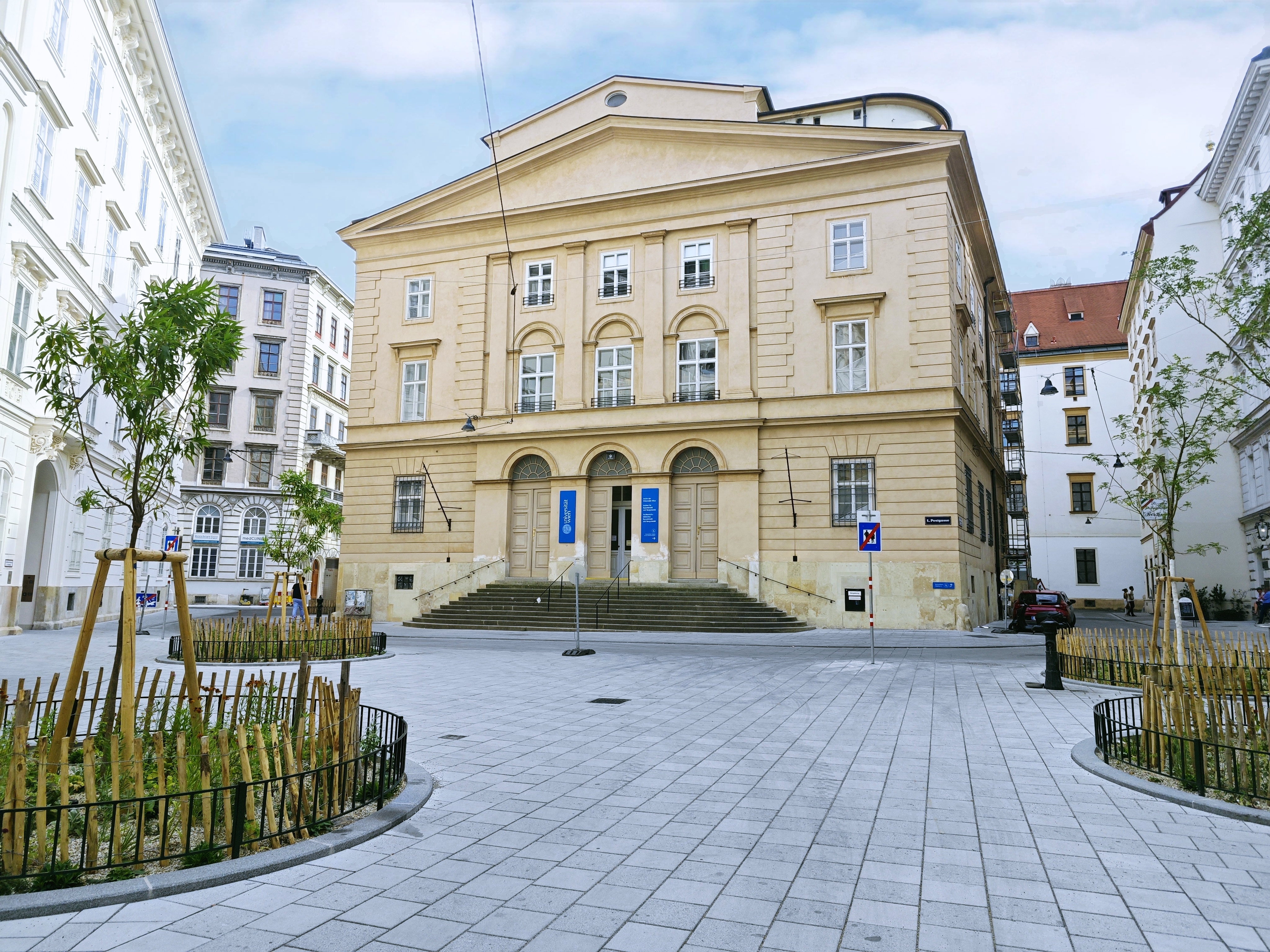 Die heutige Adresse Postgasse 9 wird seit dem späten 14. Jahrhundert von der Universität Wien genutzt. An dieser Stelle stand das älteste Gebäude der Universität, das sogenannte Herzogskolleg, das Herzog Albrecht III. 1384 der Universität schenkte. Rund um das Herzogskolleg entstand das Universitätsviertel mit Gebäuden für die einzelnen Fakultäten und Wohnmöglichkeiten für Studierende. Durch die Neugestaltung der Postgasse erstrahlt das Alte Universitätsviertel nun im neuen Glanz.