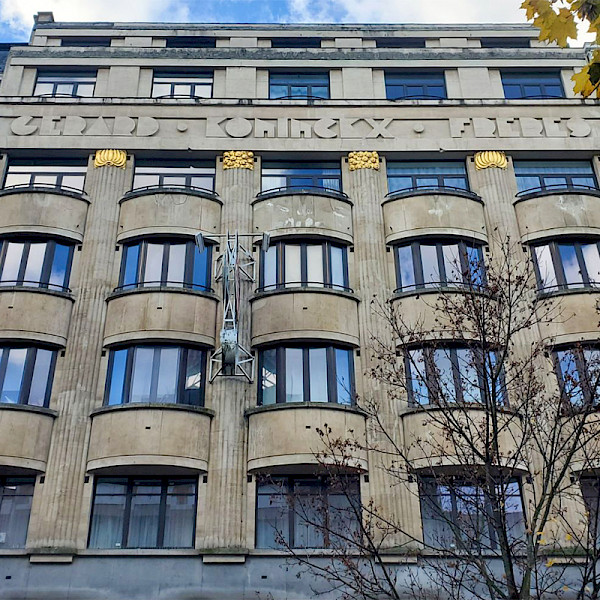 Nestled between Sainte-Catherine church and Place de l’Yser, the Quays district bears witness to Brussels’ former port activities, both in its place names and in the distinctive urban morphology of its main boulevards. The district underwent a major transformation after the docks were filled in and the large port warehouses disappeared in the 1910s. New boulevards were built in the interwar period, which explains the presence of a large number of buildings in a style mainly related to Art Deco. Intense commercial activity remained, however, as evidenced by the concentration of numerous wholesale firms, sometimes represented by remarkable Art Deco complexes. This tour invites you to discover this varied Art Deco heritage, with its mix of shops, luxury apartments and social housing, just a stone’s throw from the city centre. In collaboration with ARAU, Atelier de Recherche et d'Action Urbaines.