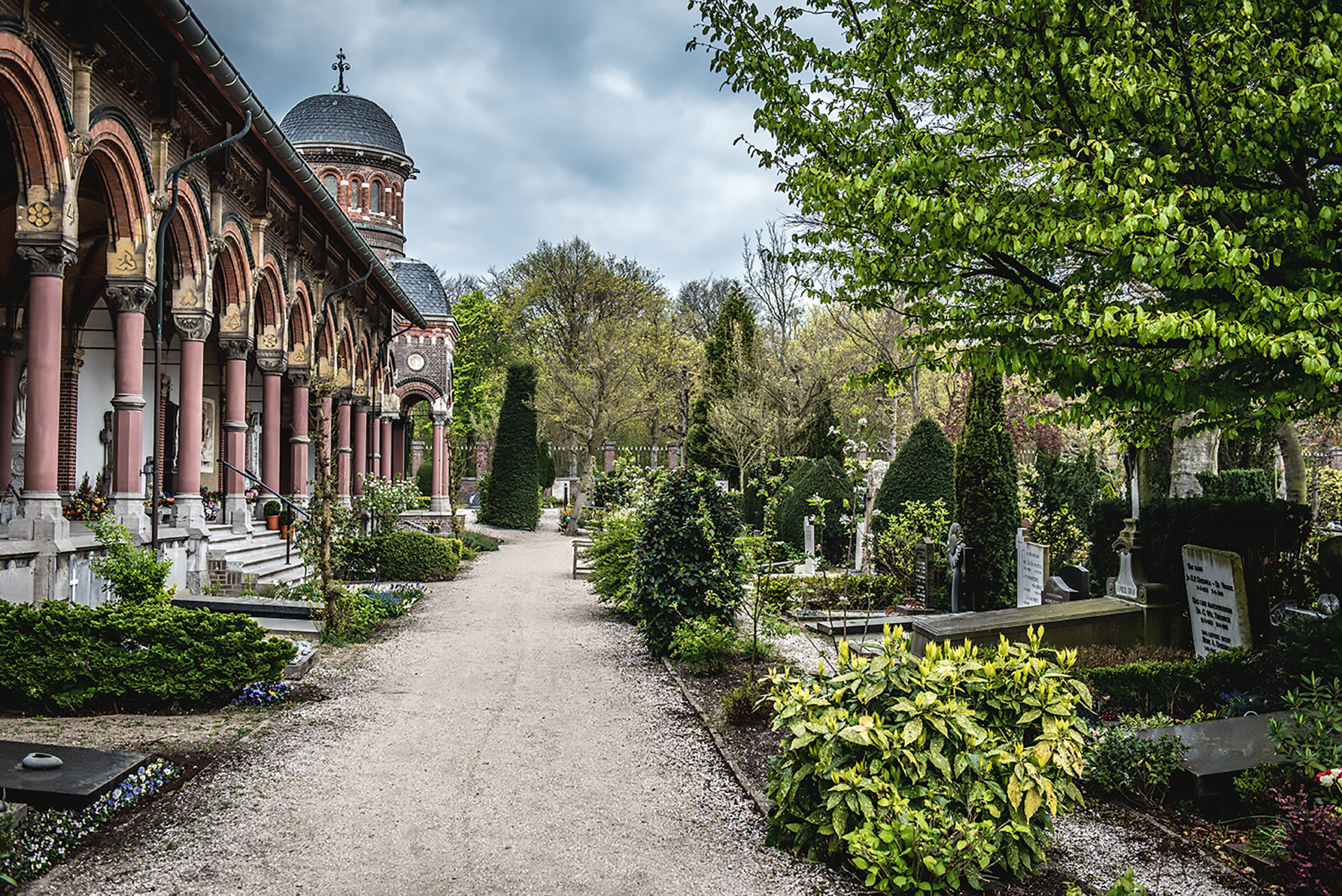 De begraafplaats is aangelegd rond 1830. Kenmerkend is vooral haar monumentale architectuur: de neoclassicistische kapel uit 1838 en de langgerekte neoromaanse arcade uit 1885, waarin ook Byzantijnse invloeden zijn te herkennen. St. Petrus Banden heeft een allure en stijl die zeldzaam is voor Nederland en deze architectuur tref je nauwelijks aan bij andere begraafplaatsen. Activiteiten: Zondag: Bezichtiging gebouwen, openstelling koffiekamer voor consumpties en papieren rondwandeling verkrijgbaar