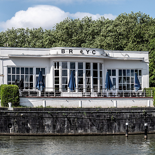 Founded in 1906 and placed under the patronage of King Albert I in 1913, the Brussels Royal Yacht Club has always enjoyed facilities at the precise location it occupies today, downstream of Van Praet bridge, at the entrance to the Brussels canal, close to the Royal Palace of Laeken. Originally consisting of a floating hangar and a pavilion used as a clubhouse, it expanded as its membership grew, until a fire destroyed the premises in 1934. A new, larger and more modern clubhouse was built and inaugurated in 1936. This prestigious modernist building still forms the main body of today’s clubhouse. The floor comes from the yacht "Erin", which belonged to Sir Thomas Lipton. The boxes and wall panelling come from the "Princesse Marie-José" and "Prince Léopold" trunks. BRYC is the leading yacht club and largest marina in French-speaking Belgium. It is very active and organises numerous events, both on land and at sea!