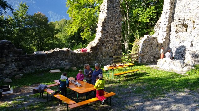Die Burgruine Blumenegg gehört zu den am besten erhaltenen Burgen des Walgaus. Dass sie einst als Sitz hochadeliger Dynasten diente, belegt die ausgedehnte Anlage mit einem Bergfried und einem repräsentativen, mehrstöckigen Wohngebäude. Die mittelalterliche Burg entstand im 13. Jahrhundert als Sitz der Grafen von Werdenberg. Sie bildete den Mittelpunkt eines eigenen Herrschaftsprengels. Kinderprogramm: Das Montessori-Zentrum Oberland gestaltet das Kinderprogramm mit altem Handwerk und Naturmaterialien.