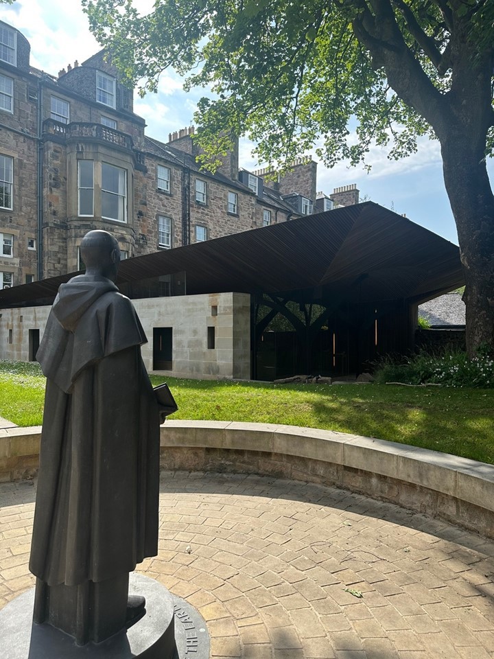27 September 2025 (13:00 - 17:00) 28 September 2025 (13:00 - 17:00) This award-winning Chapel is located in the two back gardens of Edinburgh’s oldest Georgian Square. Commissioned in 2011 by the Dominican Order who serve as Chaplains to Edinburgh’s Universities, the Chapel serves as the spiritual home of Catholic university students and staff and great many others besides. The garden features the newly installed bronze statue: “St Dominic” by Kenny Hunter, September 2023 There is an audio guide for smart phone accessible by a QR code which describes how certain garden plants represent each the stations of the cross. Parking is available in George Square Lane