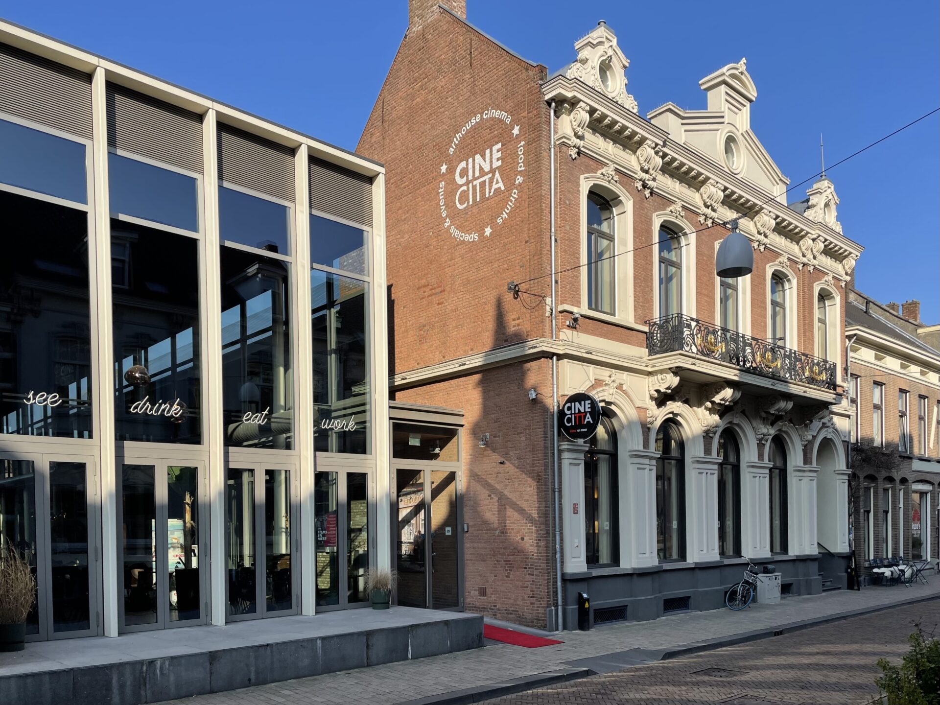 Architect: Edouard Fremau (1836-1892). Het pand is in twee fases gebouwd voor de Koninklijke Liedertafel Souvenir des Montagnards. Fremau ontwierp in Eclectische stijl in 1876 de concertzaal en in 1877 de sociëteit aan de voorkant. Opvallend zijn het balkon met gietijzeren balustraden met florale motieven en de drie gestucte stenen dakkapellen met in elk een zogenaamde oeil de boeuf. Het rijksmonument heeft in 2012 een grootscheepse verbouwing en restauratie ondergaan. Na de verbouwing zijn er drie bioscoopzalen, een multifunctionele zaal, een stijlvolle vergaderkamer, restaurant en bar gerealiseerd, die in 2014 werden opengesteld. Eind 2020 is Cinecitta uitgebreid met twee ondergrondse filmzalen en een atrium met grootstedelijke allure. Sinds 1904 worden er hier al films vertoond. Reizende gezelschappen brachten destijds zelf de benodigde apparatuur mee en ondersteunden de films met muziek, zang en explicatie in de concertzaal van de Souvenir des Montagnards. Vanwege de massale belangstelling voor het wonder van het witte doek werd in 1916 in het Souvenirgebouw een permanente filmzaal geopend: De Nieuwe Bioscoop. Later veranderde de naam in Cinema Royal, Camera, Ambassade en – sinds 1983 – Cinecitta. De naam Cinecitta verwijst naar de beroemde filmstudio’s in Rome.