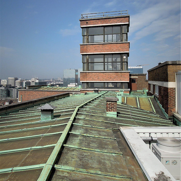In Belgium, the first telephone line was installed in Parliament in 1879. It was not long before a number of private entrepreneurs saw the potential of this new sector and filed applications for operations all over the country. In 1896, however, a public utility company was set up to prevent abuse. The telephone was a great success, but the First World War brought its expansion to a halt. Finally, the Régie des Télégraphes et des Téléphones was created in 1930, and the number of subscribers continued to grow, to the point where the company, now known as RTT, was allocated a new building for its administrative services, commissioned by the Belgian government in 1935 from architect Michel Polak. Already responsible for plans for the Résidence Palace and the Villa Empain, this graduate of Zurich’s École Polytechnique delivered an imposing modernist-style building with facades clad in blue and white stone at the front, and yellow and red brick at the back and sides. Window valances punctuate each floor, a horizontality that is not broken by the two observation turrets at the top, which were used at the time to study parasites. After the Second World War, the building was doubled in size, bringing the number of experimental turrets to four. The building’s interior has been meticulously preserved, as evidenced by its beautifully laid-out corridors, elegant sliding windows and high-quality metal elements, from stair railings to ornamental ironwork. In collaboration with the Municipality of Schaerbeek and the Commission Communautaire Française (COCOF). The guided tour includes a ride in a lift.