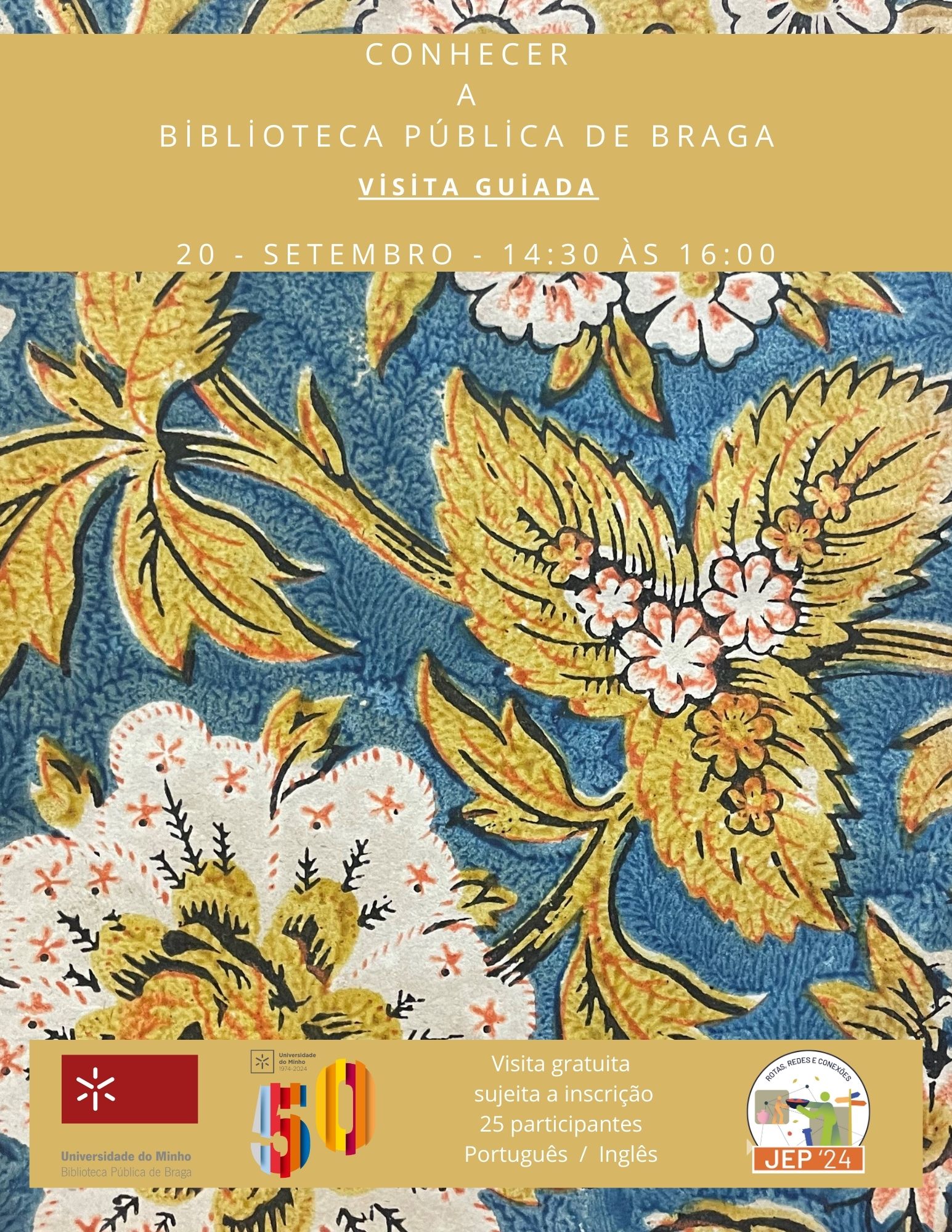 Esta visita guiada é uma excelente oportunidade para conhecer o valioso património documental, que inclui manuscritos, incunábulos, cartografia, documentos musicais e periódicos, que a BPB tem à sua guarda. Os visitantes terão oportunidade de conhecer publicações, recentes e antigas, que testemunham a história da cidade de Braga e da região do Minho. Esta iniciativa oferece uma oportunidade única para conhecer espaços habitualmente fechados ao público, como o Salão Medieval, a Sala Dourada e do Arcaz, a Torre Medieval, entre outros. A visita termina com uma subida à torre medieval com uma vista única sobre os monumentos do centro de Braga e do Jardim de Santa Bárbara.