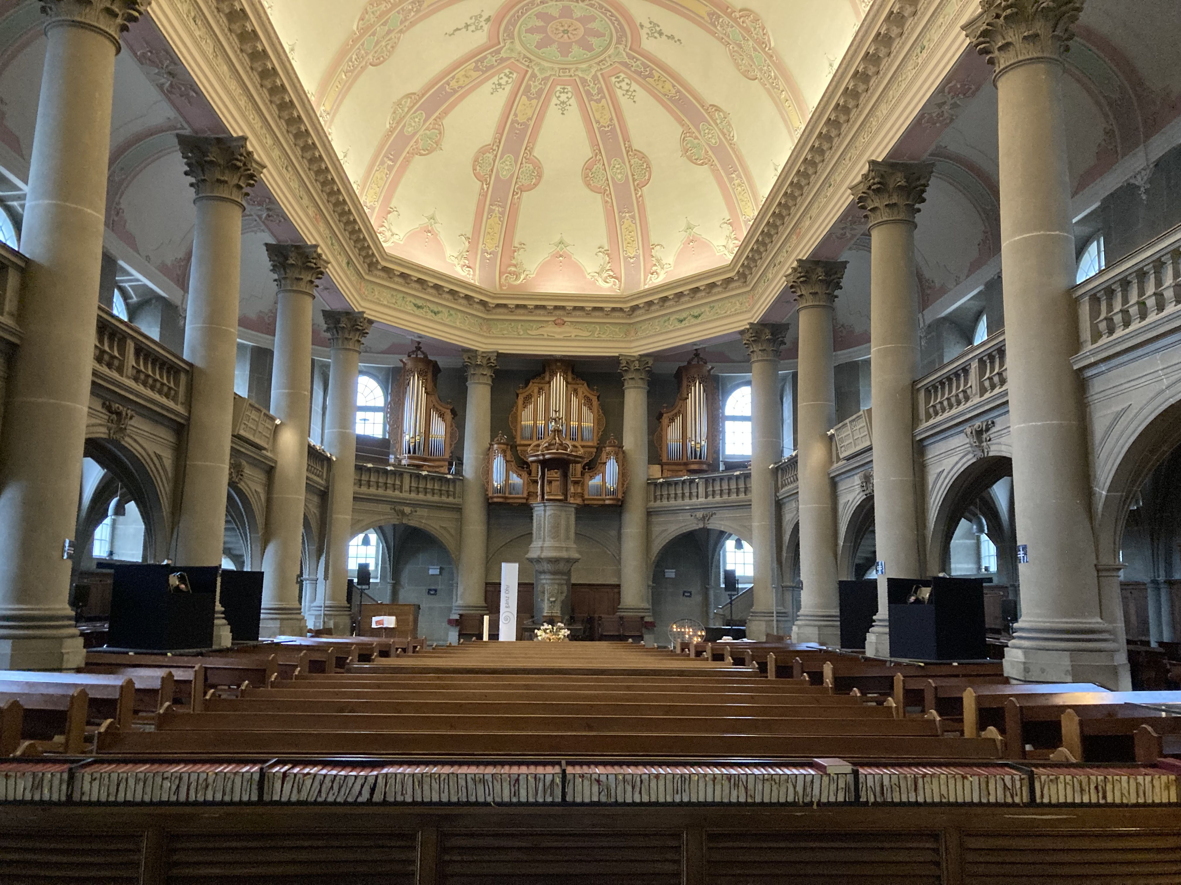 Die 1726–1729 erbaute Heiliggeistkirche gilt als Hauptwerk des protestantischen Kirchenbaus in der Schweiz. Beeindruckt das Äussere durch strenge Geschlossenheit, überrascht das Innere mit einer mächtigen, säulenumkränzten Halle und einer freistehenden, hohen Kanzel. Mal glaubt man sich in Italien, dann eher in England, vor allem aber bei den Hugenotten in Frankreich oder Genf. Die Kirche der Berner Hugenotten war sie trotzdem nicht. Könnte sie reden, hätte sie viel zu erzählen. Einiges davon erfahren Sie bei der Führung mit Jan Straub.