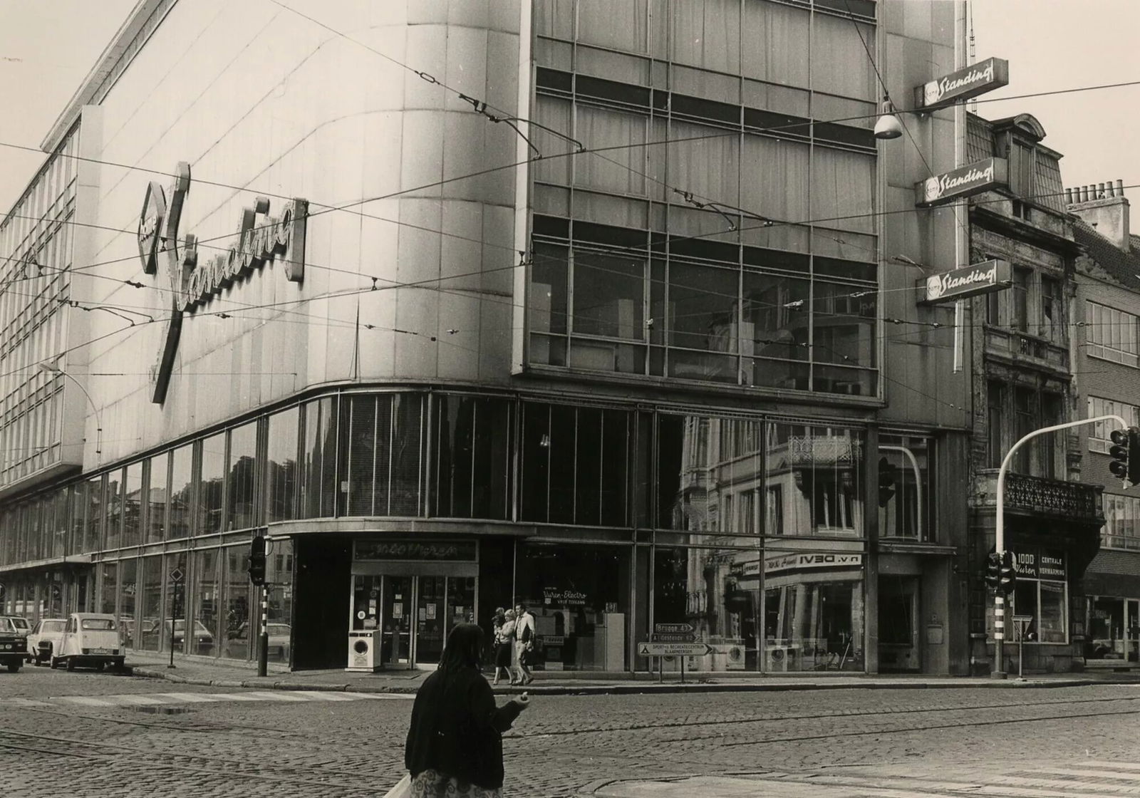 Aan de Brugse Poort heerste ooit bedrijvigheid: een aanlegplaats aan de vaart, herbergen, bedrijven. Na de sloop van de stadspoort in 1866 ontstond het kruispunt van Begijnhoflaan, Contributiestraat, Noordstraat en Brugsepoortstraat. Exact een eeuw later bouwden Emile en Jean De Nil er een modernistisch warenhuis van 935 m² en zes verdiepingen — met afgeronde hoek en grote glaspartijen. De bekende kachelzaak Duizend Vuren breidde uit naar dit gebouw. Tot in de jaren ’90 prijkte op de gevel Home Standing. Vandaag blijft die gevel een markant stadsbeeld: vergane glitter van de sixties. Vuur – ooit letterlijk aanwezig in de kachelzaak 1000 Vuren – wordt de insteek voor een vurig kunstwerk van Vincent Laute.