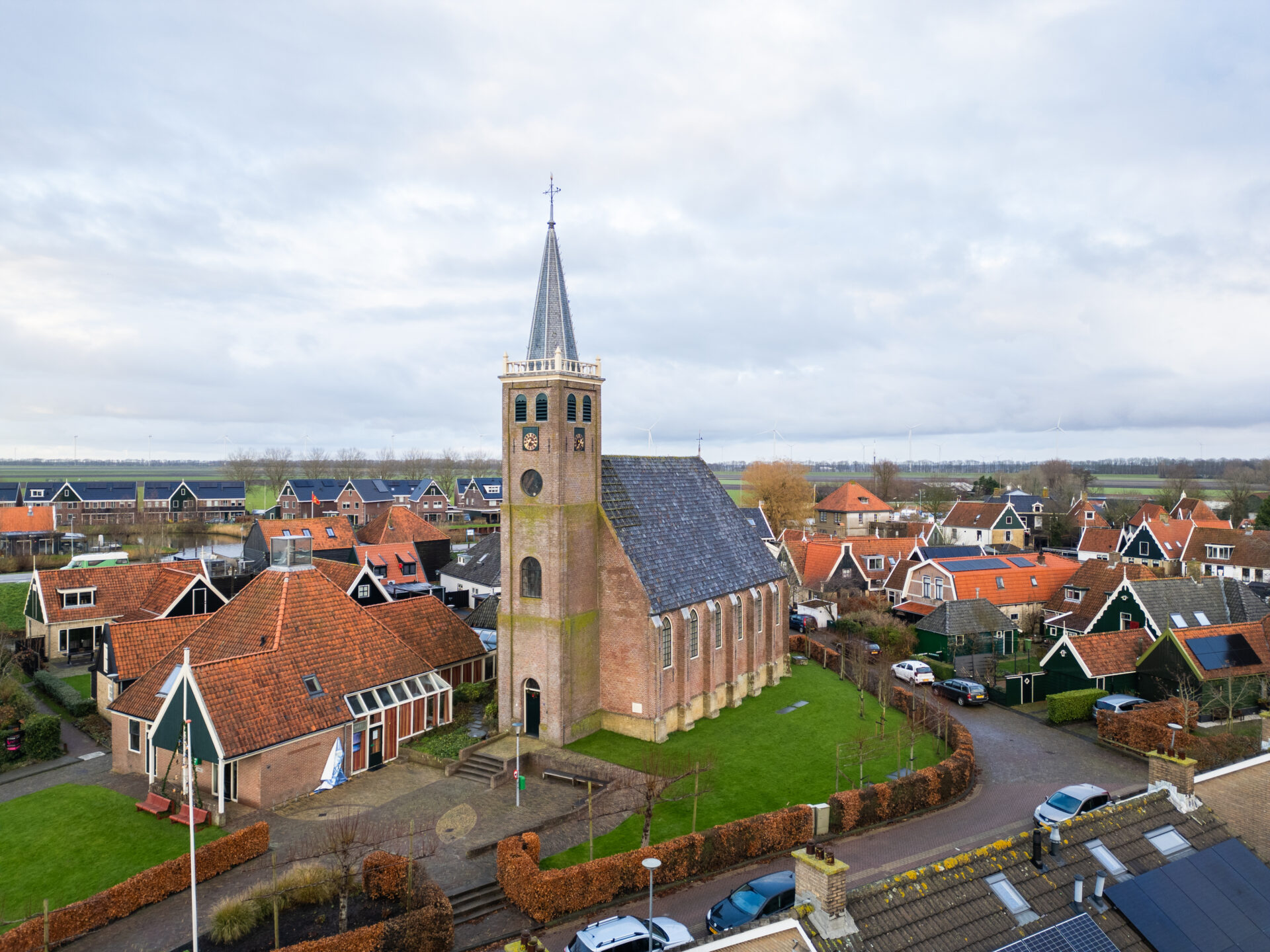 Op een terp wordt in 1646 een kerk gebouwd. Precies in de hoek van het oude vissersdorp. De oorspronkelijke ingang bevindt zich dan ook aan de oostzijde, de kant van de Oude en Nieuwe Streek. De oorspronkelijke kerk is van hout maar deze werd in 1788 verwoest in een grote brand. In 1792 wordt de huidige kerk gebouwd in de vorm van een halve kruiskerk. In 1854 is er een restauratie aan kerk en interieur. In 1966 is de Laurenskerk in slechte staat en wordt deze voor 1 gulden gekocht door het dorp. De kerk wordt mooi opgeknapt door een nieuwe stichting en is vanaf dan ook in gebruik voor culturele een maatschappelijke activiteiten.