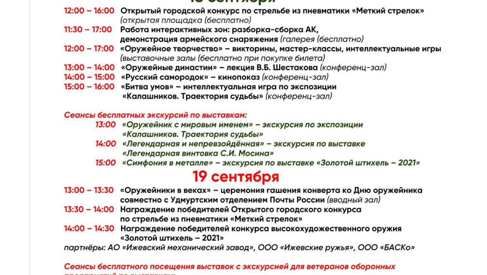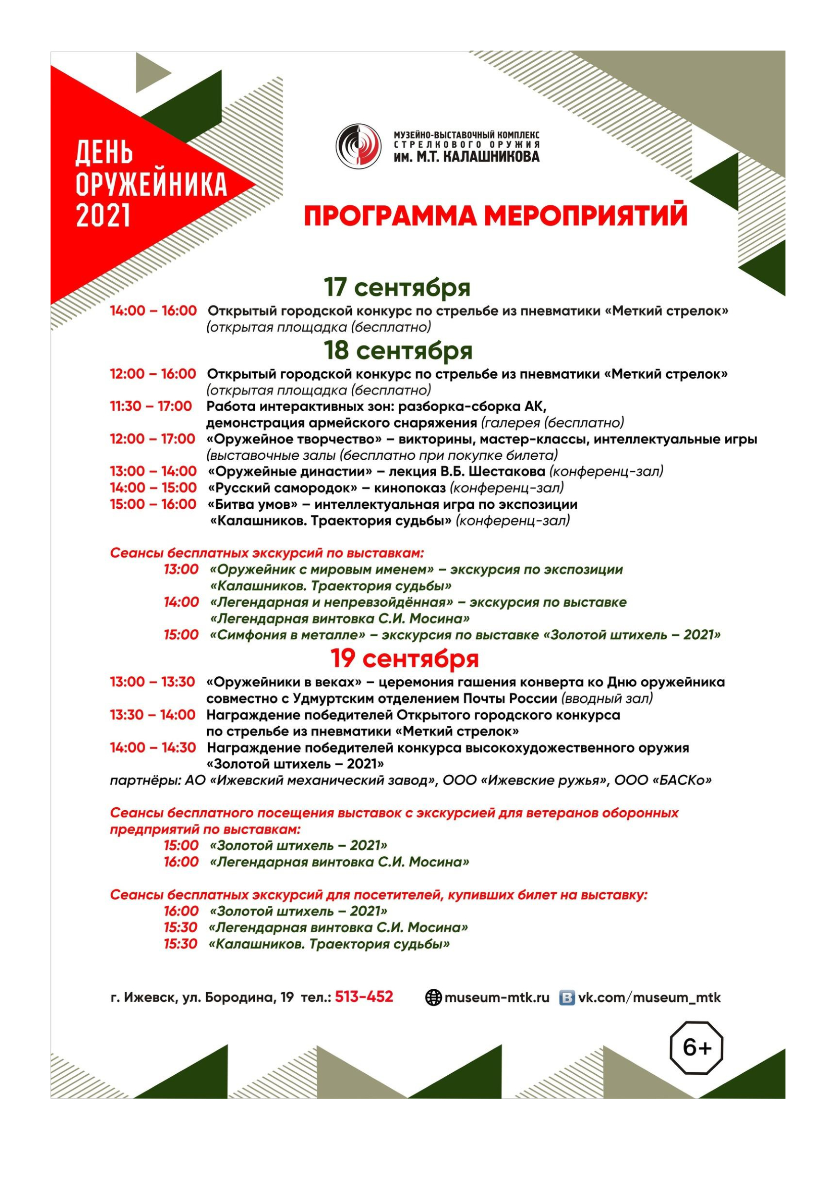 В Музейно-выставочном комплексе стрелкового оружия имени М.Т. Калашникова в честь этого праздника традиционно проводится целый комплекс интересных мероприятий 17, 18 и 19 сентября.