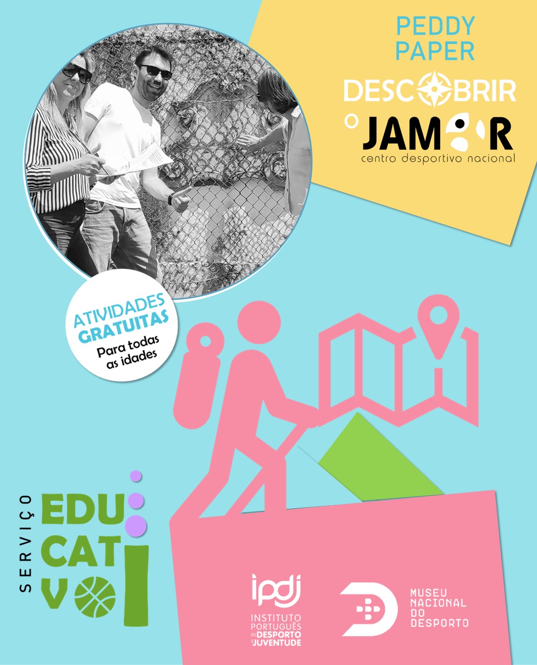 No Centro Interpretativo do Jamor, descubra a transformação deste espaço único nas suas vertentes desportiva, social, cultural, ambiental e paisagística. Um percurso que revela como o Jamor foi palco de grandes momentos e continua a ser um lugar de vida e emoção. A visita pode ser vivida de forma interativa através do peddy paper “Descobrir o Jamor” ou, como verdadeiras “portas para o futuro”, explorada online numa das 15 visitas virtuais do Museu no Google Arts & Culture relvado, tribuna de honra, túnel, piscinas, biodiversidade e muito mais! Levante o kit Peddy Paper na portaria dos seguranças e parta à aventura! Visitas virtuais online em: https://artsandculture.google.com/partner/museu-nacional-do-desporto-ipdj Complexo de Piscinas do Jamor | Avenida Pierre de Coubertin | Cruz Quebrada Seg. a Sex. 07h00 até 22h00 Sáb. 08h00 às 18h00 Dom. 08h00 às 13h00