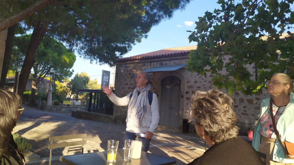 Δράση για γενικό κοινό (ώρα 18:00-20:00), στο πλαίσιο της έκδοσης του ΠΙΟΠ «Οι Πετράδες της Λέσβου». Ξεκινάει με περίπατο στον οικισμό της Αγίας Παρασκευής με στάσεις σε επιλεγμένα αρχιτεκτονικά κτήρια και κλείνει με ανοιχτή συζήτηση με τον ίδιο τον συγγραφέα κ. Χρήστο Χατζηλία.