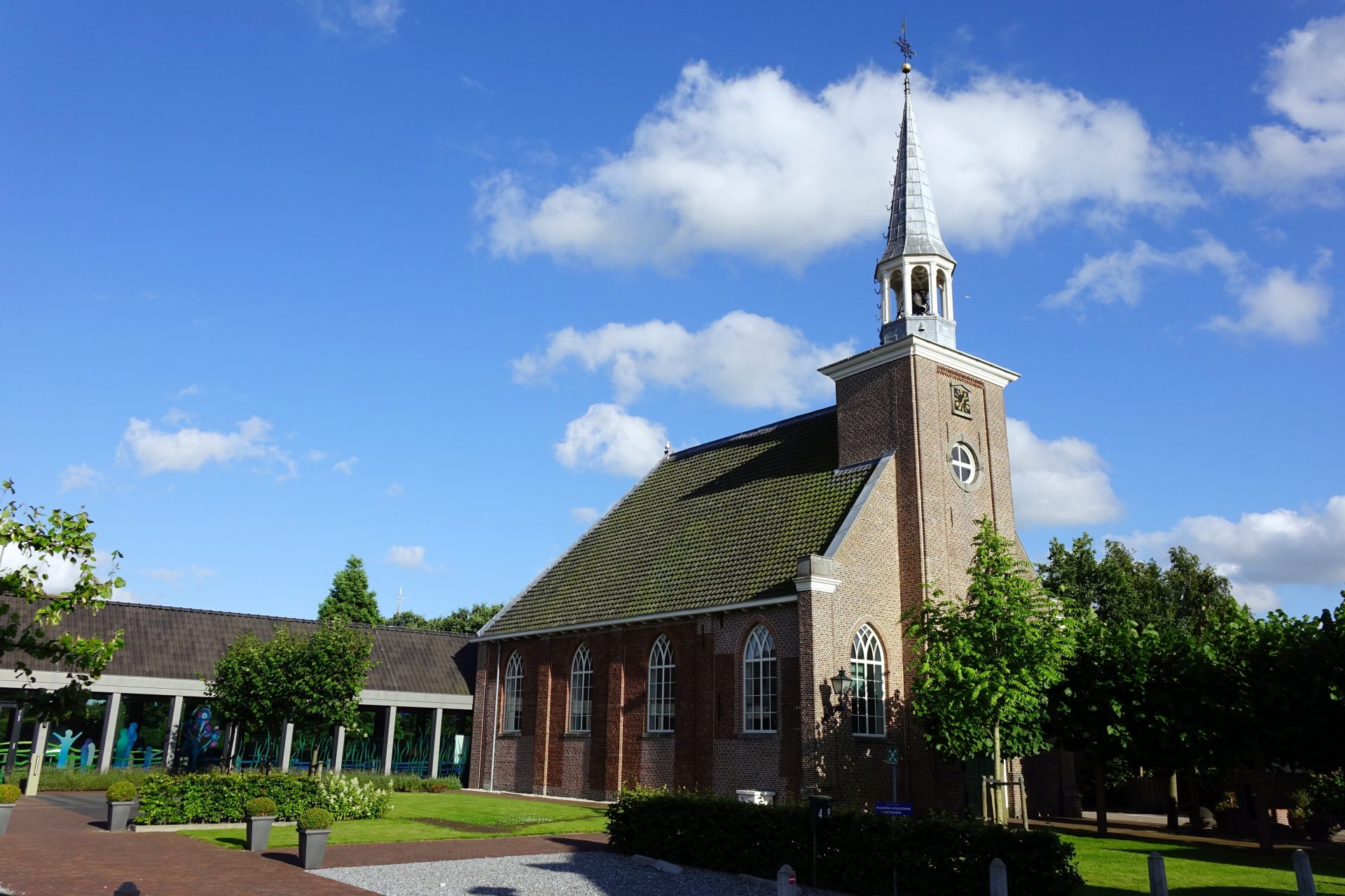 Het veengebied in en rond Leimuiden is al vroeg ontgonnen. Al in 1063 werd er melding gemaakt van een kapel in Leithamuta, deze kapel behoorde tot de moederkerk van Oegstgeest. U staat hier dus op één van de vroegste christelijke ontmoetingsplaatsen van Holland. In de vroege middeleeuwen werd deze houten kapel vervangen door een romaanse kerk, waarvan de toren gelijk met de grote laatgotische kerk uit 1555, aan het einde van de 18e eeuw is afgebroken. De huidige Dorpskerk (1805), een Rijksmonument, is een bakstenen zaalkerk met spitsboogramen. Tot het interieur behoren o.a. de grafzerken uit de kerk van 1555, het Knipscheerorgel uit 1866 met het smaakvolle front met verguld houtsnijwerk alsmede de koperen kaarsenkronen. De preekstoel, herenbank en kerkenraadsbanken tonen het ambachtelijke houtsnijwerk met interessante symbolen uit de vroeg 19e eeuw. Kloostergang Architect Sander Ros liet zich in 2012 voor de kloostergang inspireren door de maatverhoudingen van de “Gulden Snede”. De transparante verbinding tussen de Dorpskerk en het kerkelijk centrum “de Ontmoeting”, het ingetogen materiaalgebruik en de ritmiek in de gevel heeft karakteristieken van een kloostergang. Bij de restauratie van 2012 is historisch baksteen metselwerk-in-kruisverband vrijgelegd in een gepleisterde muur van de kerk. Dit bewust exposeren van metsel- en voegwerk toont bouwsporen uit het verleden. In de kerk zijn glasappliqué panelen te bewonderen en op de ramen van de kloostergang is glasfoliekunst aangebracht naar ontwerp van kunstenaar/theologe Anne-Marie van der Wilt. De kunst is gebaseerd op Ps. 1: 1-3, “hij zal zijn als een boom, geplant aan stromend water”. Archeologische opgravingen in de kerk in 2012 en onderzoek van stoffelijke resten uit de 17e en 18e eeuw leverden als resultaat dat de mannen toen gemiddeld 63 jaar werden en 168,6 cm lang en de vrouwen 54 jaar en 162 cm. Een replica van een Amsterdamse gevelsteen, gedateerd 1649, uit de Jordaan, met een afbeelding van de voormalige kerk uit 1555, is in de zuidmuur van het kerkelijk centrum “de Ontmoeting” gemetseld. De brug vóór de kerk en een vaart met bootjes vertellen ons dat de kerkgang destijds ook per boot werd gemaakt. Delen van Oude Wetering en Calslagen behoorden toen tot de kerkelijke gemeente van Leimuiden. Stiltetuin Achter “de Ontmoeting” is een Stiltetuin aangelegd die aansluit op de Algemene Begraafplaats. De tuin ademt een sfeer van meditatie, een stilteplek, een rustpunt om je te onthaasten, om op adem te komen. Bijvoorbeeld na het bezoek aan een graf, maar ook voor zomaar een meditatief moment met uitzicht op dit groene en rustige deel van het dorp. Met in de tuin een bron, als verwijzing naar Jezus Christus, de Bron van het leven, die het levende water geeft. De uitgebreide historie met uitleg van de kerk is beschreven in het boekwerkje “De Dorpskerk te Leimuiden” dat op de website van de kerk www.pgleimuiden.nl staat en tijdens Open Monumentendag verkrijgbaar is. Ook is er een presentatie met uitleg. Meer informatie over het Open Monumentendag programma in Kaag en Braassem is te vinden op www.kaagenbraassempromotie.nl.