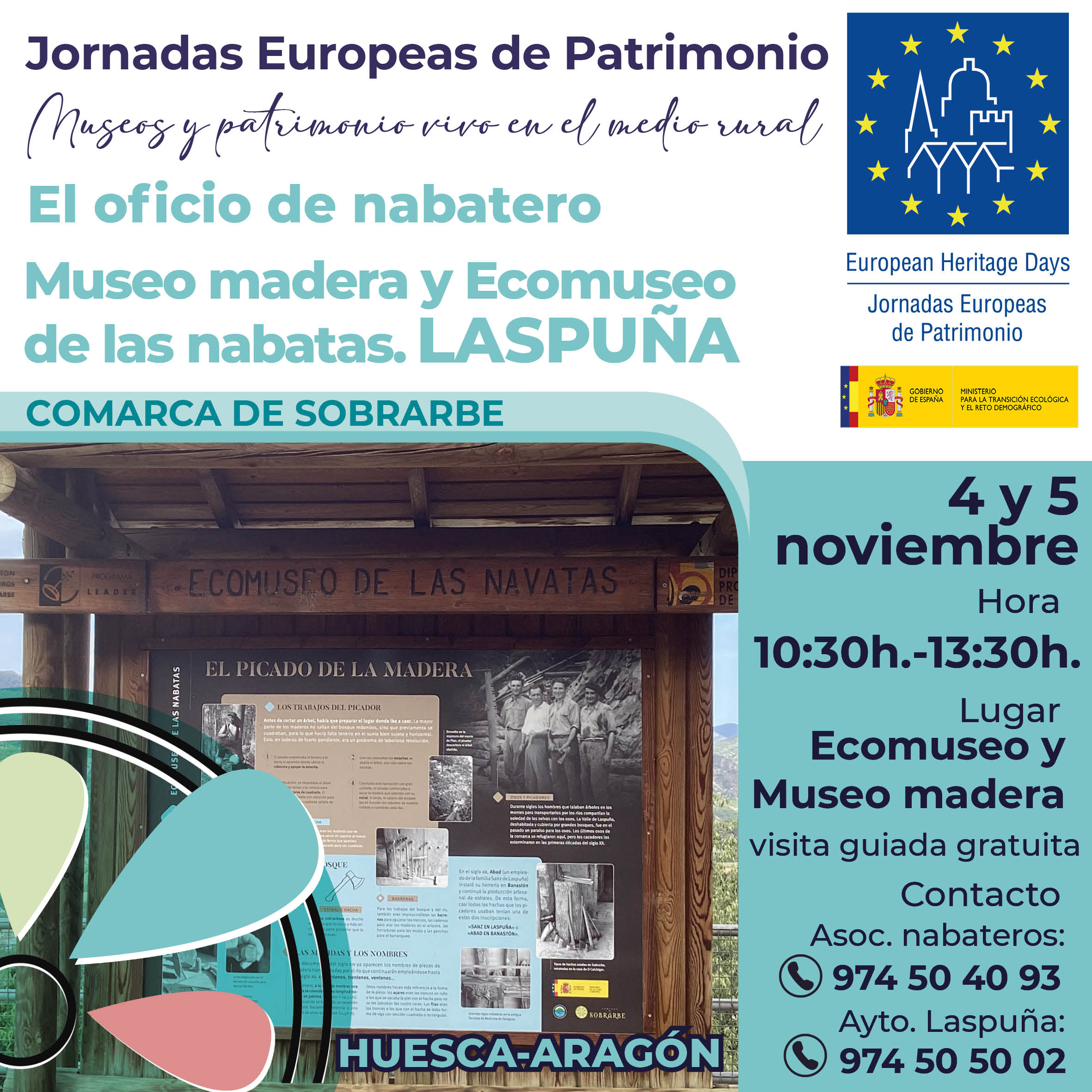 Desde el siglo XVI hasta mediados del siglo XX, en la época del deshielo (mayenco), los nabateros descendían el río Cinca en nabatas, embarcaciones de troncos realizadas para transportar la madera de los bosques de montaña hasta la desembocadura del Ebro. En 1983 los jóvenes de la zona se interesaron por recuperar el oficio y formaron la Asociación de Nabateros de Sobrarbe con el objetivo de conservar y dar a conocer la historia y el trabajo de los nabateros. Desde entonces, cada mayo se realiza el Descenso de Nabatas por el río Cinca entre los pueblos de Laspuña y Aínsa, convirtiéndose en una de las celebraciones insigne del Pirineo Aragonés. También participaron en la creación del Museo de la madera y el Ecomuseo de las nabatas en Laspuña y la Ruta de los nabateros en Puértolas. En 2022 fue inscrita en la Lista Representativa del Patrimonio Cultural Inmaterial de la Humanidad de UNESCO dentro de la candidatura “Timber Rafting/La Maderada/Cultura del Transporte Fluvial de la Madera. The job of nabatero . Ecomuseums of Laspuña and Puértolas and Wood Museum in Laspuña . From the 16th century to the middle of the 20th century, during the time of thaw ( mayenco ), the Nabateros descended the Cinca River in nabatas , log boats made to transport wood from the mountain forests to the mouth of the Ebro. In 1983 the Young people from the area became interested in recovering the trade and formed the Association of Nabateros of Sobrarbe with the aim of preserving and making known the history and work of the nabateros . Since then, every May the Nabatas Descent along the Cinca River takes place between the towns of Laspuña and Aínsa, becoming one of the flagship celebrations of the Aragonese Pyrenees. They also participated in the creation of the Wood Museum and the Ecomuseum of the Nabatas in Laspuña and the Route of the Nabateros in Puértolas. In 2022 it was inscribed on the Representative List of the Intangible Cultural Heritage of Humanity of UNESCO within the candidacy “ Timber Rafting/La Maderada/Culture of River Transport of Wood.