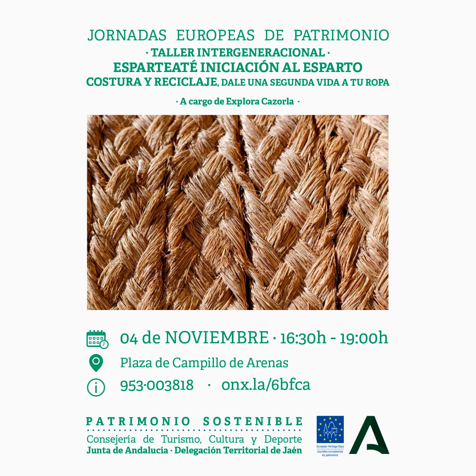 Con el taller intergeneracional de iniciación al esparto de la mano de Imité Educativa, se pretende que los niños y niñas, a través de la práctica, puedan conocer la planta y los distintos materiales y técnicas que se utilizan en la artesanía del esparto. De manera que puedan realizar sus primeras trenzas y pleitas, llevándose a casa “un saber” importante en nuestra cultura y hasta un bonito recuerdo del arte del esparto.
