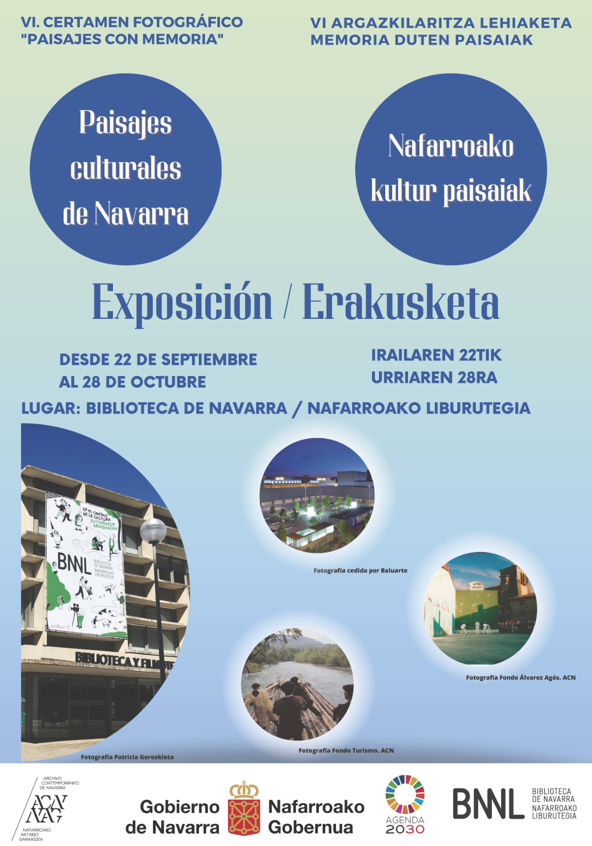 Entrega de premios y exposición de las fotografías ganadoras y una selección de las presentadas al certamen dedicado este año a los Paisajes culturales. La exposición se podrá visitar en la Biblioteca de Navarra desde el día 22 de septiembre hasta el 28 de octubre.