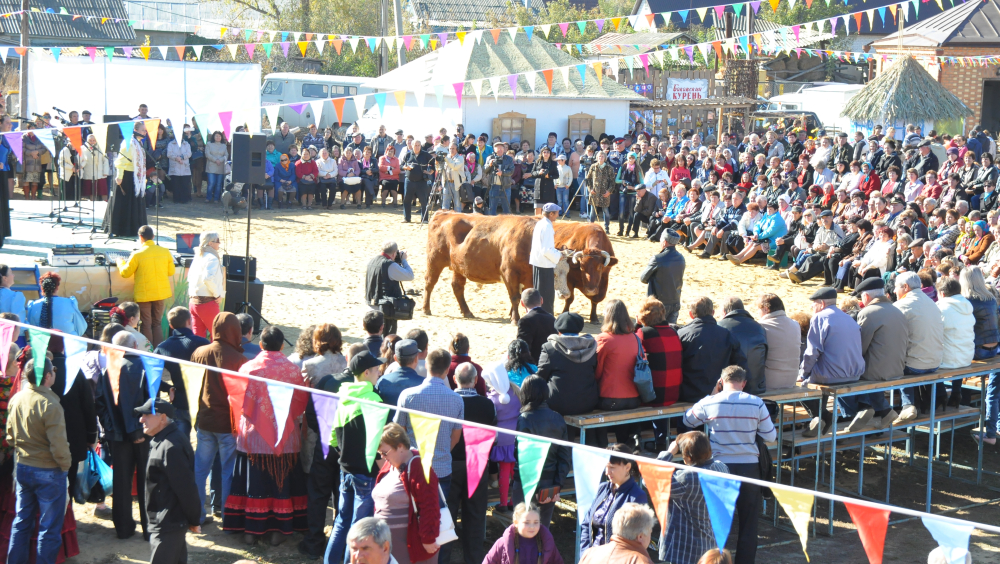 dishes of traditional Cossack cuisine and hot herbal tea are served. The guests enjoy the theatrical, circus artists and athletes’ performances. Children swing and ride on a merry-go-round, horses and ponies and learn walking on stilts.