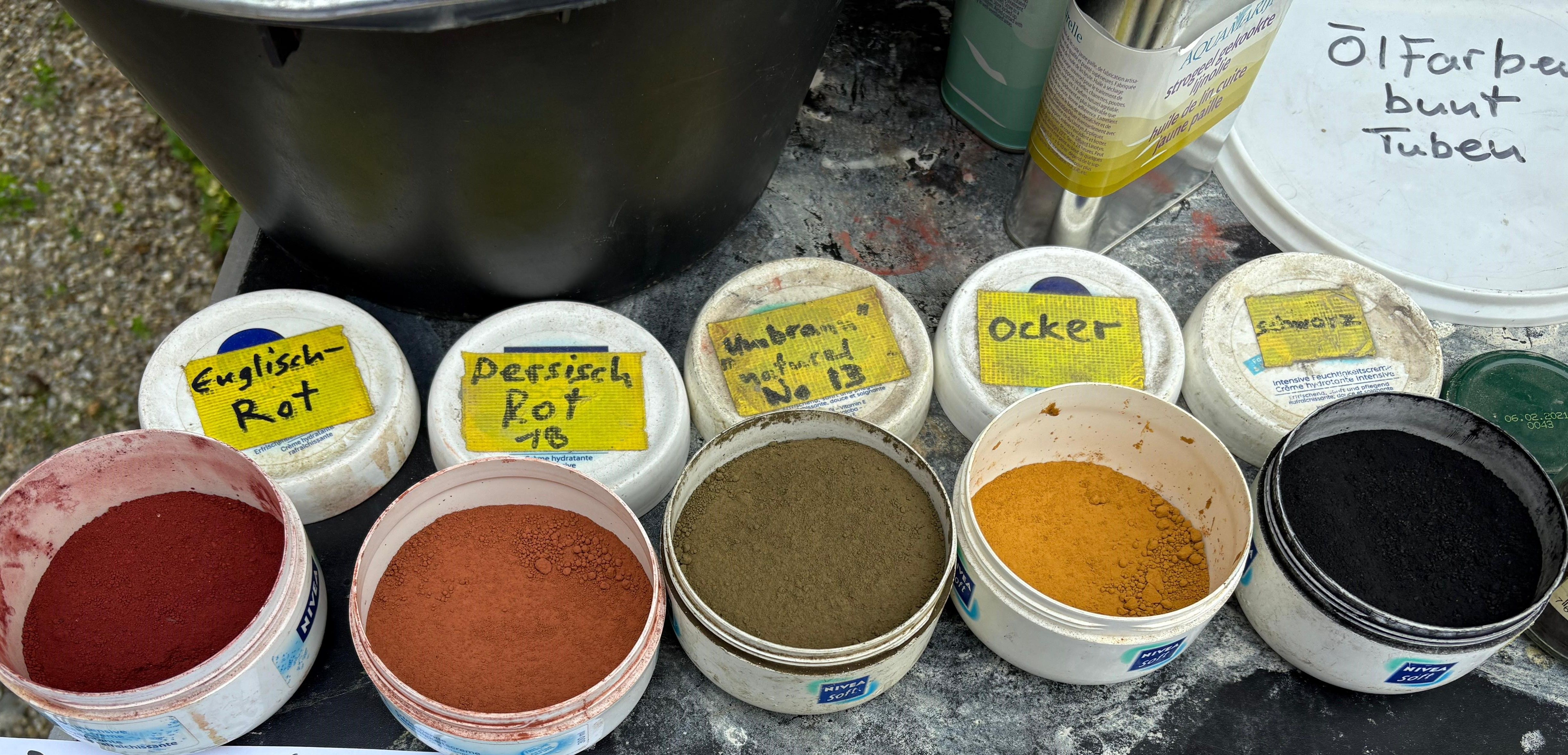 Führungen durch Thomas Klug, Keimfarben AG, und Lukas Wallimann, Denkmalpflege Schaffhausen Sa, 13.09.2025 10:30 - 11:15 Réservations terminées Sa, 13.09.2025 14:00 - 14:45 Réservations terminées Sa, 13.09.2025 15:30 - 16:15 Réservations terminées Organisation Denkmalpflege Schaffhausen denkmalpflege@cluttersh.ch denkmalpflege.sh.ch +41 52 632 72 01 En collaboration avec Keimfarben AG Informations complémentaires Führungen mit Teilnehmerzahl beschränkt. Anmeldung auf kulturerbe-entdecken.ch und am 13.09. am Infostand bei der Chlosterschüür. Offene Werkstatt ohne Anmeldung