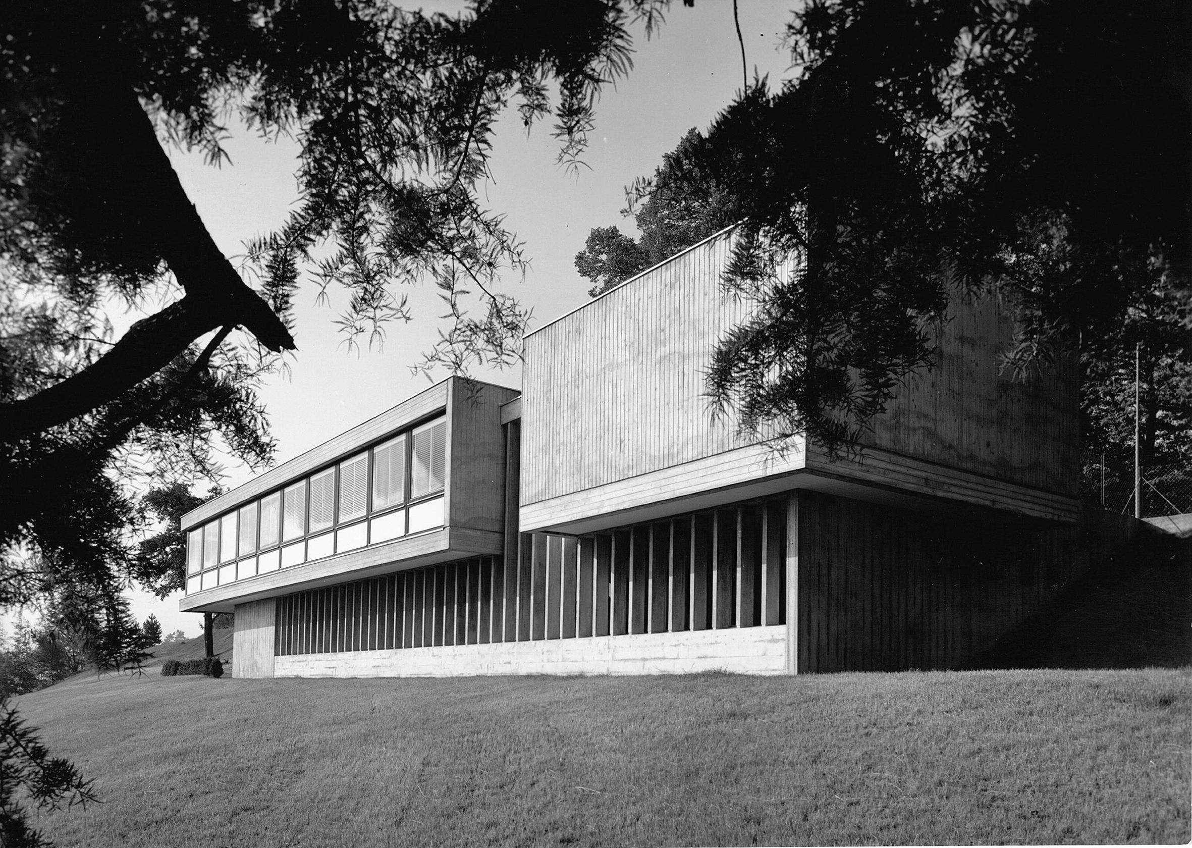 Construite en 1962 sur un terrain en forte pente, face à la gare de la Praille, la villa de Pierre Nierlé abrite la famille et le bureau de l’architecte. Elle se présente comme un objet à la volumétrie puissante dont la modernité s’affirme avec éclat : béton brut, toit plat, porte-à-faux, fenêtre en longueur, etc. Véritable manifeste architectural, elle concentre une quantité impressionnante d’innovations techniques et constructives que Nierlé transpose du domaine hospitalier à celui de l’habitation. Il souhaite ainsi répondre au problème des nuisances sonores et des vibrations du trafic ferroviaire et routier. À l’intérieur, l’architecte apporte un soin extrême au dessin du mobilier intégré, au choix haptique des matériaux comme à la polychromie, offrant des espaces raffinés et fonctionnels. Mise récemment sous protection, la villa fait actuellement l’objet d’une rénovation attentive qui se veut respectueuse de son architecture comme de son authenticité matérielle.