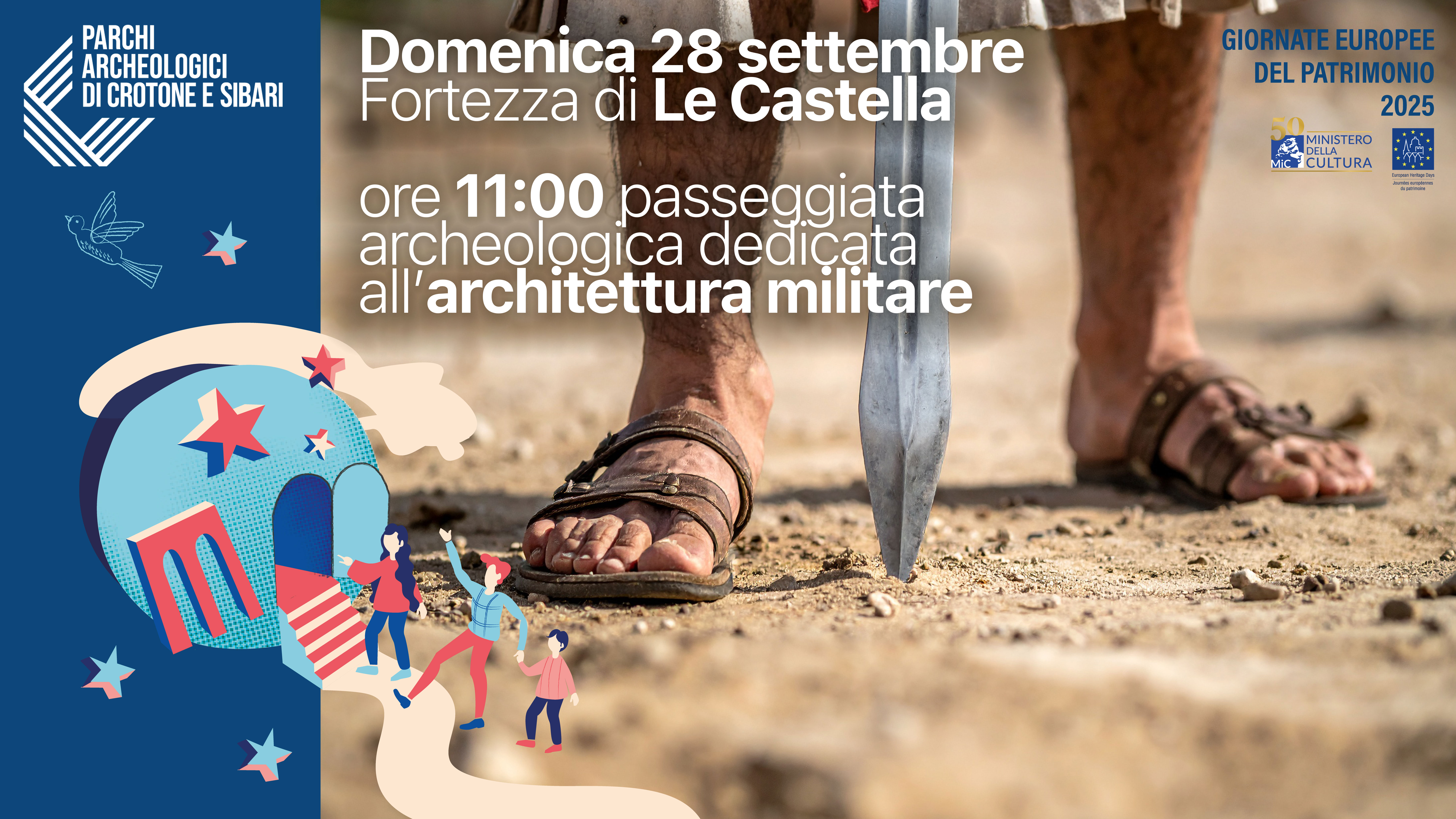 GEP 2025 - Fortezza "Le Castella" (evento diurno) In occasione delle Giornate Europee del Patrimonio, la maestosa Fortezza Aragonese di Le Castella apre le sue porte con un’iniziativa speciale: Passeggiata archeologica dedicata al tema dell’architettura militare. Ore 11:00 - visita guidata a cura del personale interno. Un’occasione unica per scoprire storia, segreti e suggestioni di uno dei luoghi simbolo del nostro patrimonio culturale. Ingresso gratuito © 2021 MiC - Pubblicato il 2025-09-17 15:25:45 / Ultimo aggiornamento 2025-09-24 13:10:52