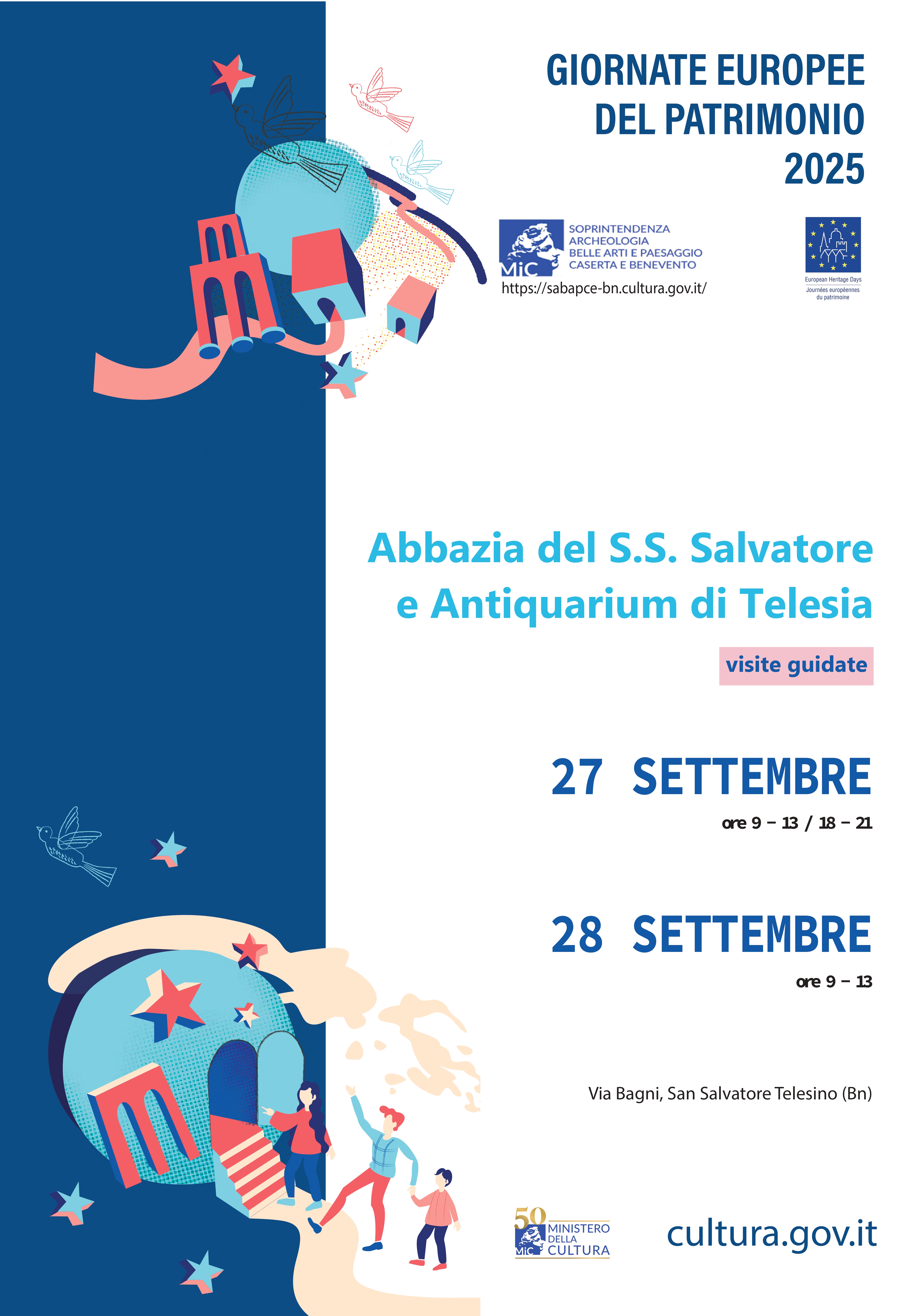 GEP 2025 Sabato 27 e domenica 28 settembre 2025 la Soprintendenza Archeologia belle arti e paesaggio per le province di Caserta e Benevento apre l'Abbazia del SS. Salvatore e l'Antiquarium di Telesia organizzando visite guidate. Ingresso gratuito