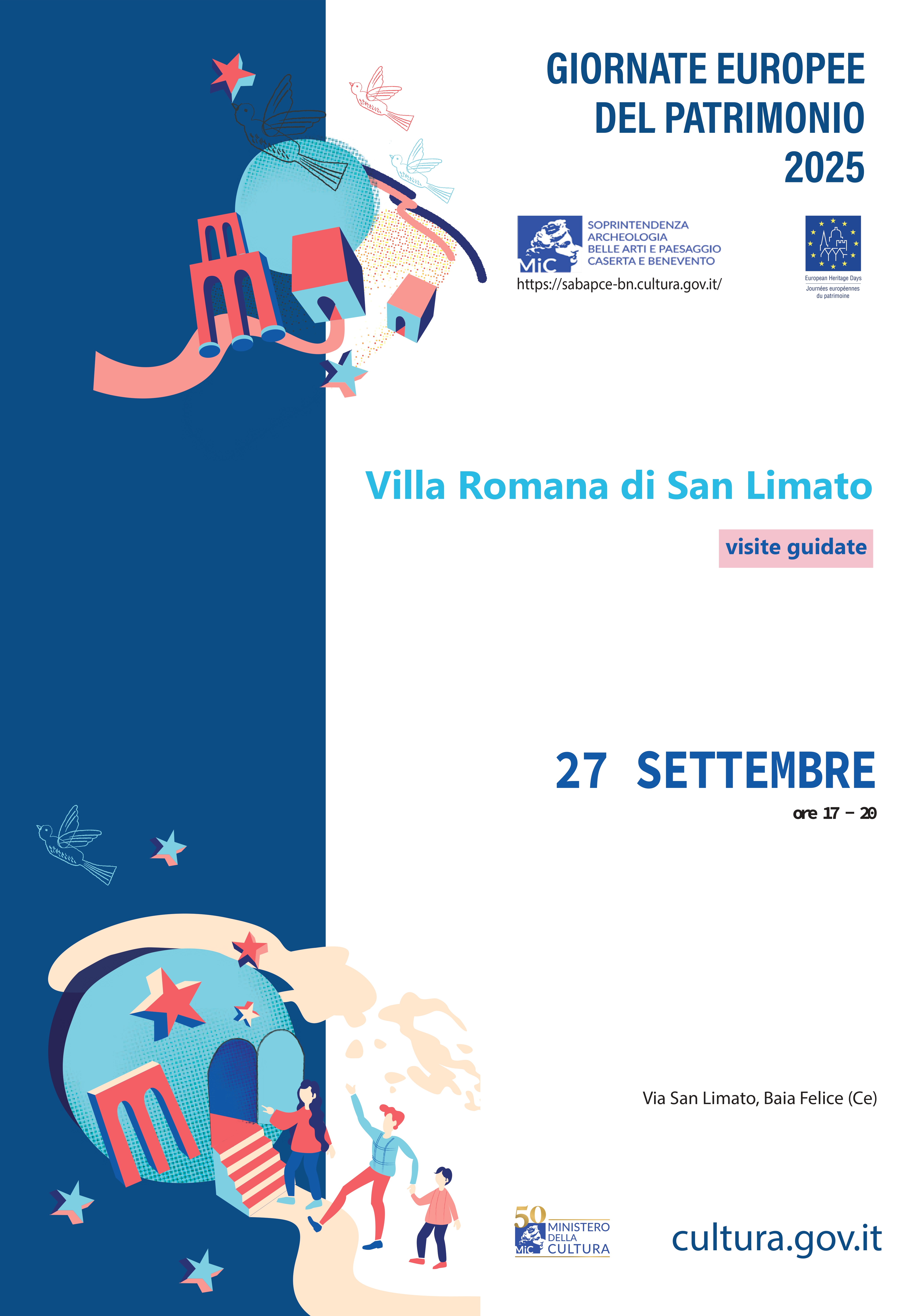 GEP 2025 Sabato 27 settembre 2025 la Soprintendenza Archeologia belle arti e paesaggio per le province di Caserta e Benevento apre la Villa Romana di San Limato organizzando visite guidate. Ingresso gratuito
