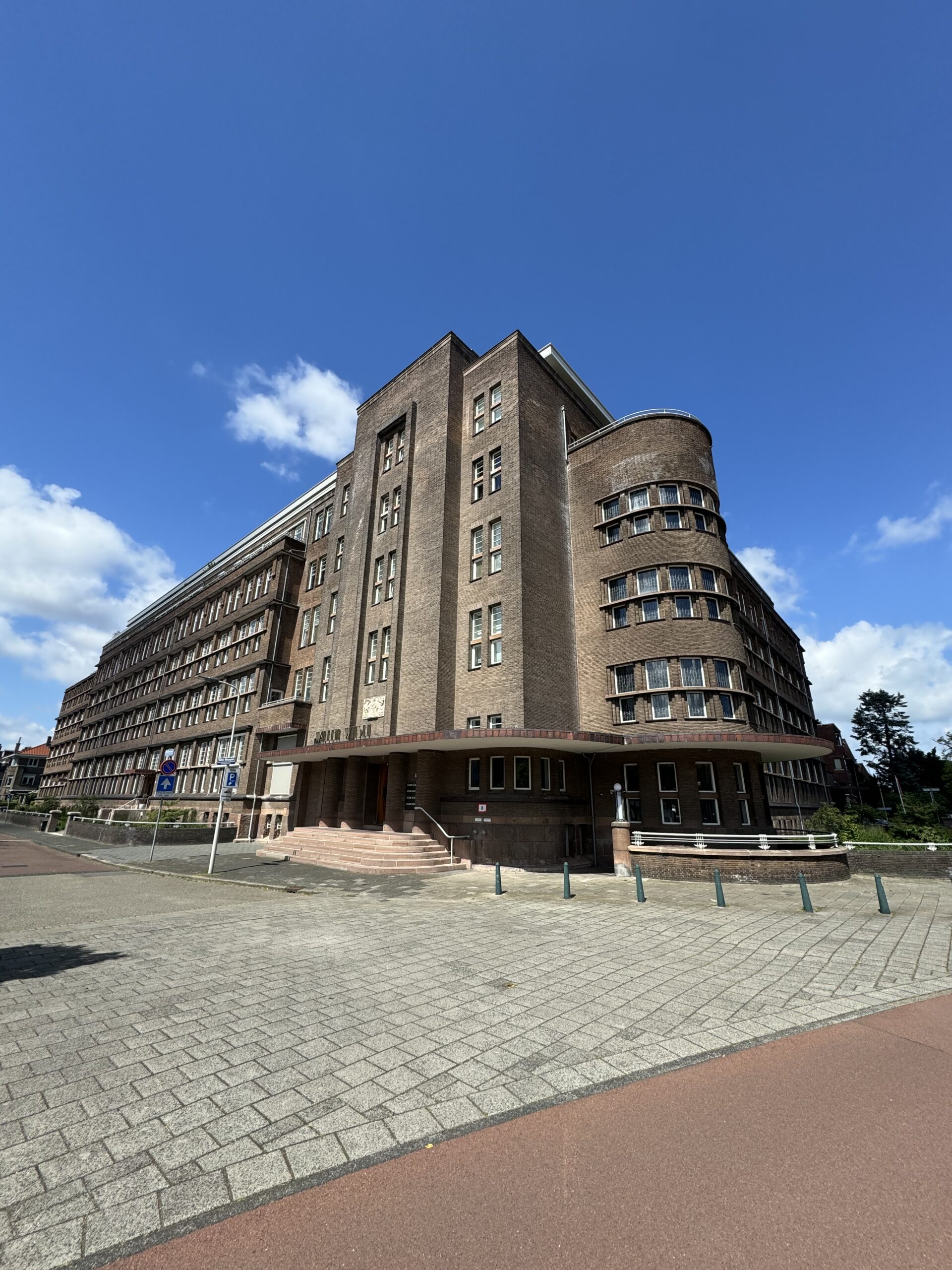 Dit gebouw is in 1933 gebouwd voor de Octrooiraad naar ontwerp van J.G. Robbers. De toepassing van metselwerk en betonbanden sluit aan bij de stijlkenmerken van de Nieuwe Haagse School, kenmerkend voor de wijk. Bij de transformatie zijn veel originele architectuurdetails van het exterieur en interieur behouden. Bijzonder zijn de gebrandschilderde ramen in het monumentale trappenhuis. Activiteiten: Zondag: bezichtigen van de gebrandschilderde ramen in het monumentale trappenhuis.