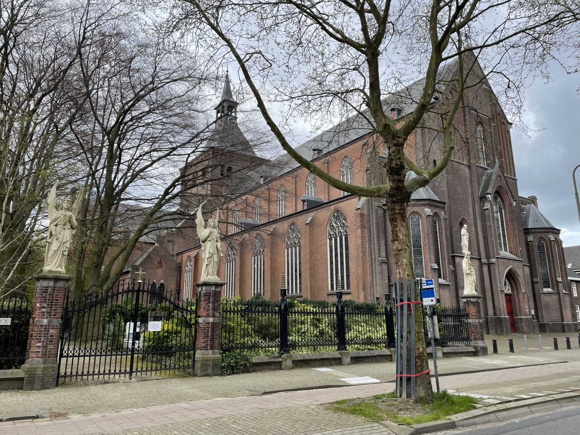 Architecten: 1839: Hendrik Essens (1776-1845) uit Oisterwijk / 1903: François de Beer (1873-1960) uit Tilburg / 1938: C.H. de Bever (1897-1965) uit Eindhoven. Het in neogotische stijl gebouwde schip uit 1839 van architect Essens is het oudste deel van de Sint Dionysiuskerk. Hij paste hier de zogeheten Willem II-gotiek toe, een vroeg voorbeeld van de gothic revival die koning Willem II in Engeland had opgedaan. De kerk is gebouwd onder toezicht van ingenieurs van Rijkswaterstaat en wordt daarom ook een Waterstaatskerk genoemd. In 1903 kreeg de kerk een nieuwe voorgevel met torenspits in neogotische bouwstijl. Architect was François de Beer. In 1938 werd begonnen met een totale nieuwbouw van het gebedshuis, in traditionalistische stijl uitgevoerd door Kees de Bever. Aan de achterzijde van de kerk werd een groot transept met vieringtoren gebouwd. De torenspits uit 1903 is in 1966 weer afgebroken. De kerk is tussen 2007-2015 gerestaureerd en gerenoveerd. Sinds deze renovatie is alleen het schip van de kerk in gebruik. In het linker transept is een nieuwe afgesloten aularuimte gebouwd, die dienst doet als een functionele accommodatie voor koorrepetities, vergaderingen en diensten in de winterperiode. Het rechter transept is wandelruimte en opslagplaats geworden In de voorgevel zijn twee gietijzeren beelden van het H. Hart en van O.L. Vrouw van het H. Hart uit 1904 te zien. Deze zijn vervaardigd door ijzergieterij Fa. W. van der Schoot uit Tilburg. Het interieur van de kerk wordt verder opgesierd door 34 beelden. Twee beelden dateren uit de zeventiende eeuw (Sint Norbertus en Sint Quirinus). Enkele interieurstukken zijn van Belgische kunstenaars, zoals het schilderij de ‘Onthoofding van de H. Dionysius’ van de Luikse historieschilder Antoine Wiertz uit 1842. In 1907 werd een nieuwe kerkpolychromie aangebracht door de Bossche kerk- en decoratieschilder Dorus Hermsen (1871-1931), naar ontwerp van architect Jos. Cuypers. De polychromie bestaat uit engelen in het middenschip en verder symbolische motieven, bloemen en kransen. In 2010 is de beschildering gerestaureerd. De apsisschildering uit 1938 is van Jos ten Horn (1894-1956). In de kerk bevinden zich negentien gebrandschilderde glas-in-lood ramen, onder andere van P.J.H. Cuypers uit 1929 en van de Tilburgse glazenier Piet Clijsen (1909-1977) uit 1945. Een van de oudste inventarisstukken in de kerk is een hardstenen doopvont uit 1590. De plaats van herkomst is onbekend. Hij moet nog in de oude Tilburgse kerk aan de Markt hebben gestaan. Een andere doopvont dateert uit 1876. De vier gebeeldhouwde biechtstoelen uit 1860-1863 komen uit het atelier van de Gebroeders Goossens uit Den Bosch. De kerkbanken in neorenaissancestijl zijn in 1912 ontworpen door de Tilburgse architect C.J. van Meerendonk (1877-1959). Het orgel is in 1905 gemaakt door de gebroeders Smits uit Reek. Kerkhof Begin 1816 is ten noorden van de toenmalige schuurkerk het eerste deel van dit kerkhof aangelegd. In 1882 wordt de grond achter de kerk erbij getrokken. Zijn huidige vorm verkrijgt het kerkhof in 1892. Het is een begraafplaats voor vele textielfabrikanten en textielarbeiders. Van de ruim duizend grafmonumenten zijn er zes aangewezen als rijksmonument, namelijk de nummers: A 6-2, CD 35, CD 37, D 2-8, E 15-13 en E 15-02. Aan de straatzijde een smeedijzeren hekwerk (rijksmonument). Op de hoekpilasters staan vier gietijzeren beelden, vervaardigd door ijzergieterij Fa. W. van der Schoot uit Tilburg in 1904. Van links naar rechts: Johannes de Doper, twee apocalyptische engelen, en Sint Jozef.