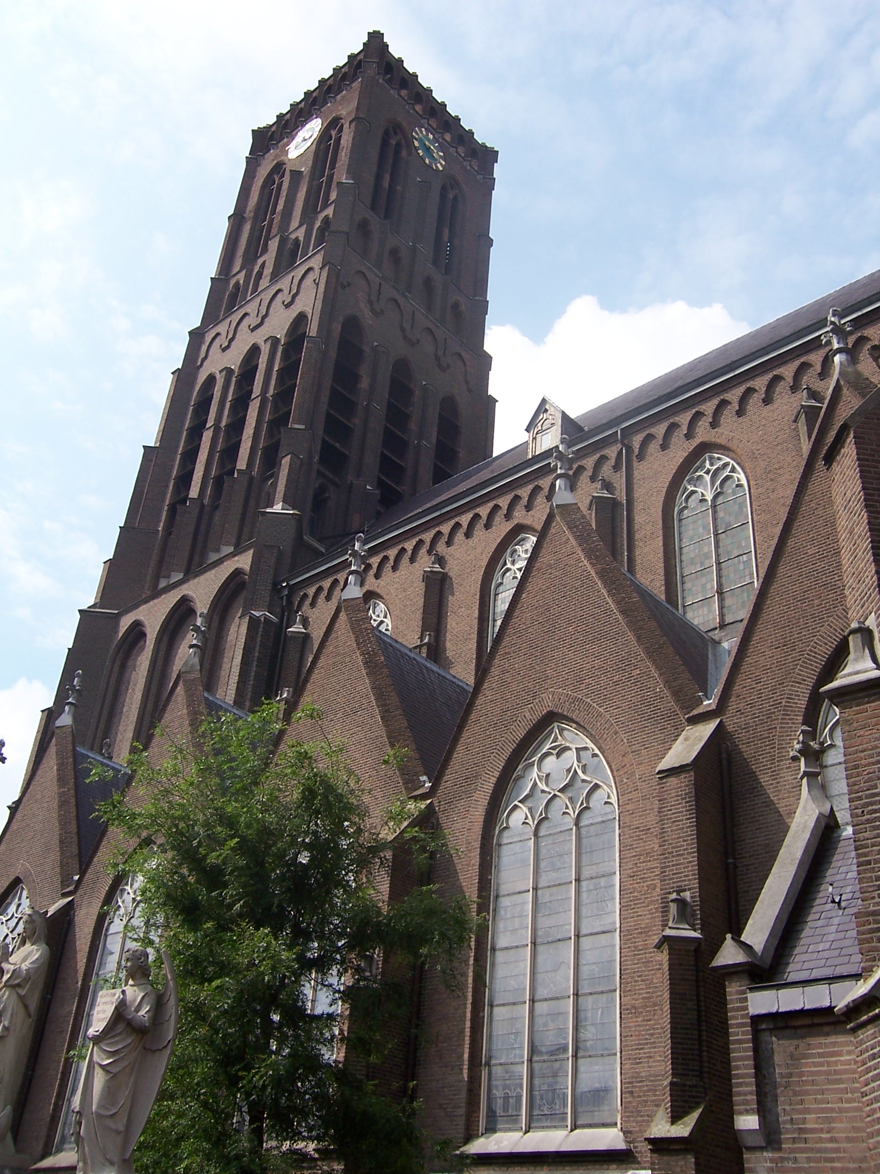 De Grote Kerk is een rijksmonument en is in neogotische stijl gebouwd. Deze rooms-katholieke kerk, die gebouwd werd van 1857 tot 1859, is de oudste nog bestaande kerk in Oss. Hij verving de middeleeuwse Sint-Willibrorduskerk. Sint Willibrordus is de patroonheilige van de stad Oss. De nieuwe kerk werd toegewijd aan de Maagd Maria Onbevlekt Ontvangen. De kerk is gebouwd naar ontwerp van architect Van Tulder. Het interieur is sterk geïnspireerd op de bekende gotische Sint-Janskathedraal in ’s-Hertogenbosch. De mooie gebrandschilderde ramen komen uit het eind van de negentiende eeuw. Osse ondernemers en rijke burgers hebben het interieur van de kerk met geschenken verfraaid. De hoge toren is kenmerkend voor het centrum van Oss. Opvallend is dat de toren geen spits heeft, maar een bakstenen balustrade als bekroning. Tijdens de Open Monumentendag kan met een gids de 58 meter hoge toren beklommen worden. Bij helder weer biedt dit een prachtig uitzicht over Oss en wijde omgeving. Wil je op een andere dag de kerk bekijken of de toren beklimmen? Mail dan naar gotojj@home.nl voor een afspraak.
