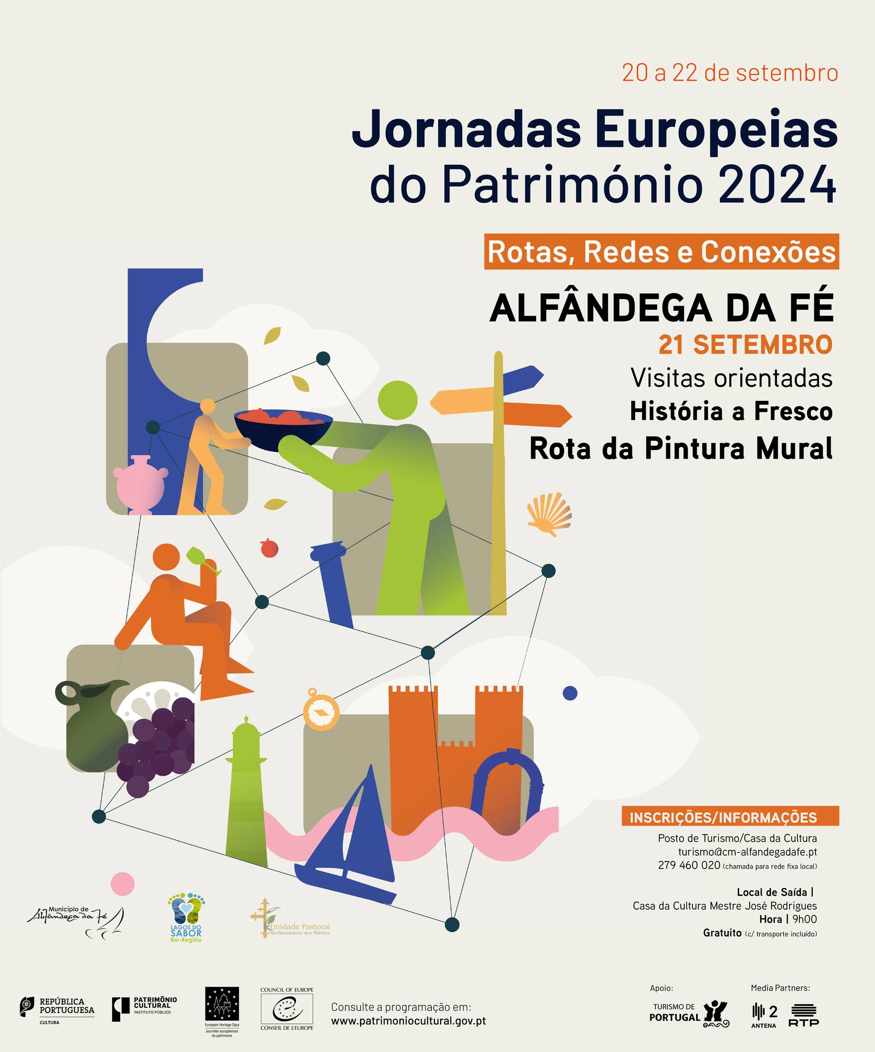 Participe nas Jornadas Europeias do Património 2024, cujo tema este ano é "Rotas, Redes e Conexões" e conheça a "História a Fresco - Rota da Pintura Mural" no concelho de Alfândega da Fé, através de uma visita orientada pelas várias capelas intervencionadas e cujas pinturas murais foram restauradas e conservadas, permitindo ao público descobrir obras de arte dos séculos XVI e XVII. Locais a visitar: Capela Nossa Senhora de Jerusalém em Sendim da Serra, Igreja de Nossa Senhora da Assunção em Valverde, Capela Divino Senhor dos Milagres em Sendim da Ribeira e Ermida de São Geraldo em Vale Pereiro. Duração da atividade: 3h30 (aprox) Local de saída: Casa da Cultura Mestre José Rodrigues Gratuito c/ transporte incluído