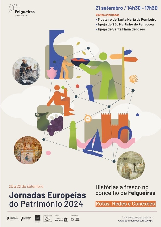 O Município de Felgueiras assinala no próximo dia 21 de setembro as Jornadas Europeias do Património com uma visita orientada a três monumentos do concelho. Sob a premissa “Histórias a frescos no concelho de Felgueiras”, a visita pretende exaltar a pintura mural existente em três monumentos religiosos: Mosteiro de S. Maria de Pombeiro, Igreja de S. Martinho de Penacova e Igreja de S. Maria de Idães. Os participantes terão a oportunidade de rumar até ao séc. XVI e re(descobrir) as pinturas, os lugares e as influências que marcam hoje o presente e abrem janelas para o passado. O transporte estará a cargo do município de Felgueiras e a concentração será pelas 14h30, em frente ao edifício da Câmara Municipal de Felgueiras.