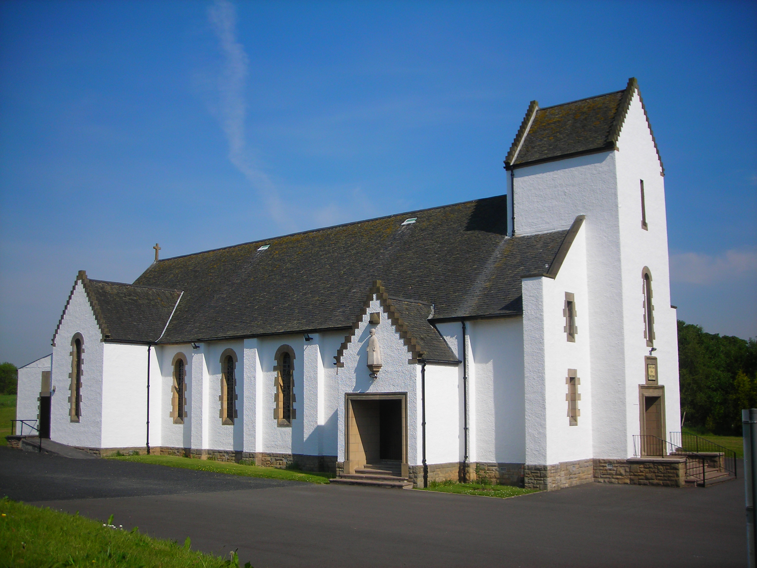 21 September 2025 (12:00 - 16:00) The present Holy Name Church was designed in the early Scottish style by architects Reginald Fairlie & Partners. Building of the church was made possible by the generosity of the Smith-Sligo family of Inzievar House and the foundation stone was laid in 1956. Construction was completed and the church was opened and consecrated in November 1958. Particularly outstanding features are the stained glass windows, made by Gabriel Loire, and the statues carved by French designers from Chartres. Hew Lorimer created a simple but evocative stone sculpture of the Child Jesus, which can be seen above the side entrance to the church. The church houses a small museum where copies of a book describing the history of the parish are available. Tours of the church will take place throughout the day.