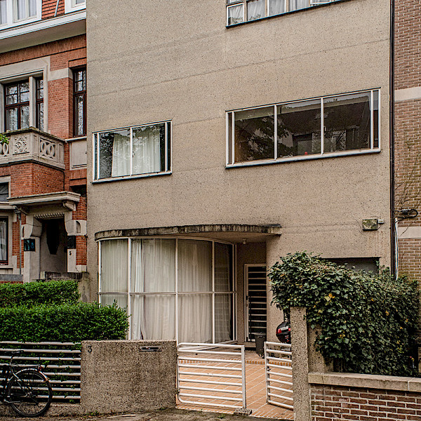 Designed by architect Louis-Herman De Koninck between 1931 and 1932, this modernist villa bears the name of its patron, Philippe Dotremont, who was a director of Raffineries et Sucreries du Grand Pont in Hoegaarden. This renowned contemporary art collector wanted a residence that reflected his image, and it is fair to say that the building was a success, since it was listed in 1977. With its discreet, smoothed concrete facade, it features metal-framed bays arranged asymmetrically, as well as a glazed half-cylinder marking the entrance and a glass-tile window, a process widely used in the interior to transmit light from one space to another. De Koninck designed the first two floors as a duplex, demonstrating his mastery of volumes, offering plenty of visibility in an eminently functional and original layout. The staircase, with its tubular handrail running to the top floor, seems to be one of the unifying elements of the space. The upper level opens onto a partially covered terrace. In collaboration with Arkadia (FR) and Korei Guided Tours. Photographs are not permitted. Please switch off your smartphone before the guided tour begins.