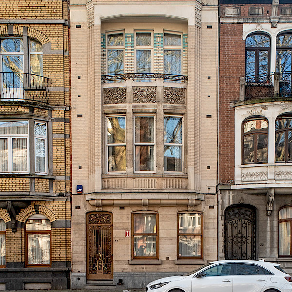 This remarkable Art Deco bourgeois house was built for a Portuguese merchant, Mr Homem de Macédo. It has kept its name ever since. Architect Émile Vanlerberghe was in charge of the project, which was completed in 1927. The date and the signature of the owner appear on the ground floor, which was clad in white stone. On the upper floors, white Silesian bricks were combined with white and light-blue stone and glazed bricks, a colour also found on the imposing cornice. The facade features a central bow window topped by a loggia with a balcony decorated with stylised floral motifs. The house has retained a splendid glass door with a wrought-iron gate featuring a gushing fountain. A butterfly serves as a doorbell. The interior perfectly illustrates the volumetry typical of the period and the decoration, a refined Art Deco style reflected in the fireplaces, stained glass windows, radiator covers, locks, doors, hardware, wood panelling and choice of marble. (CL 23/12/2021) In collaboration with ARAU, Atelier de Recherche et d'Action Urbaines (FR) and Korei Guided Tours (NL/EN). Guided tour in Belgian French sign language - Saturday at 13:30.