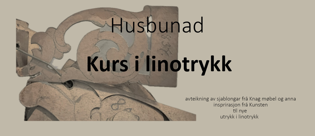 Husbunad er tema for Voss Kunst og Kultur sine tilskipingar under Kulturarvfestivalen i Indre Vestland med felles markering under dei årlege kulturverndagane. Det nasjonale tema i år er Heim og me ha valdt å bruket utrykket til Magnus Dagestad som brukte nemninga Husbunad om interiør og dekor i heimen. Kurset i linotrykk er med inspirasjon frå sjablongar og malar frå Knag møbel som VKK har fått arva og anna inspirasjon frå Kunsten og Magnus Dagestad. VKK har alt utstyr til kurset. Kursleiar: Sanita Balode: lektor i visuelle kunstfag Instagram: sanita_art FB: Sanita Balode art Fredag 12. september kl 18.00 – 21.00 Laurdag 13. september kl 10 – 16.00 Maks 12 deltakarar 2 gratisplassar til ungdom Kurs avgift kr 1750,- inkl utstyr, Vipps 720715 Medlem VKK kr 1.500,- Ta med niste, me serverer kaffi og litt snacks Påmelding til vosskunstogkultur@gmail.com innan 31.august Velkomen til kurs i linotrykk