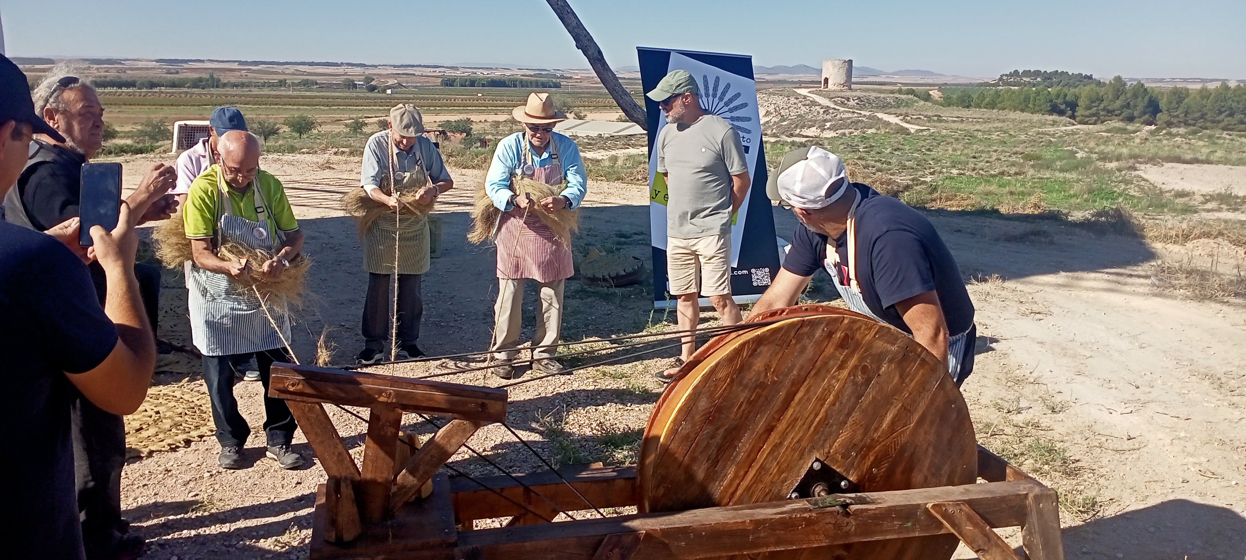 Demostración de hilada y fabricación de estropajos, ubicado en la explanada del molino de viento "Gorrinos", de la mano de los Hiladores de Villarejo de Salvanés. Celebrado el día 1 de octubre de 2023