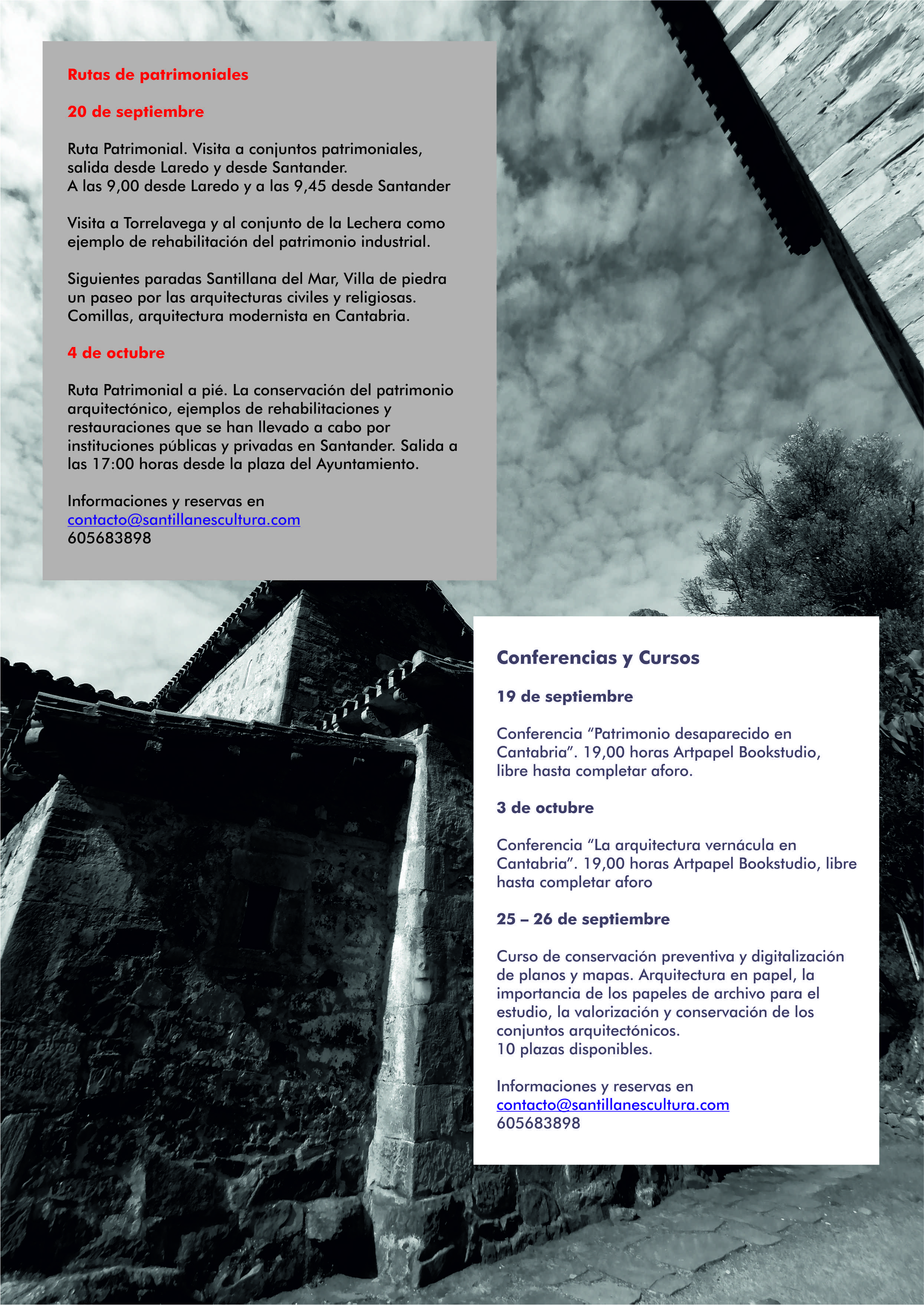 Organizadas por Artpapel Bookstudio con el patrocinio de la Consejería de Cultura Turismo y Deporte del Gobierno de Cantabria, y la colaboración de la Asociación Arte Libro, consta de una programación de actividades que tengan como eje central la promoción del conocimiento y la valorización del patrimonio arquitectónico de Cantabria. A través de visitas guiadas, de conferencias y cursos específicos, sobre las distintas tipologías de patrimonio arquitectónico, civil, industrial y religioso de nuestra comunidad.