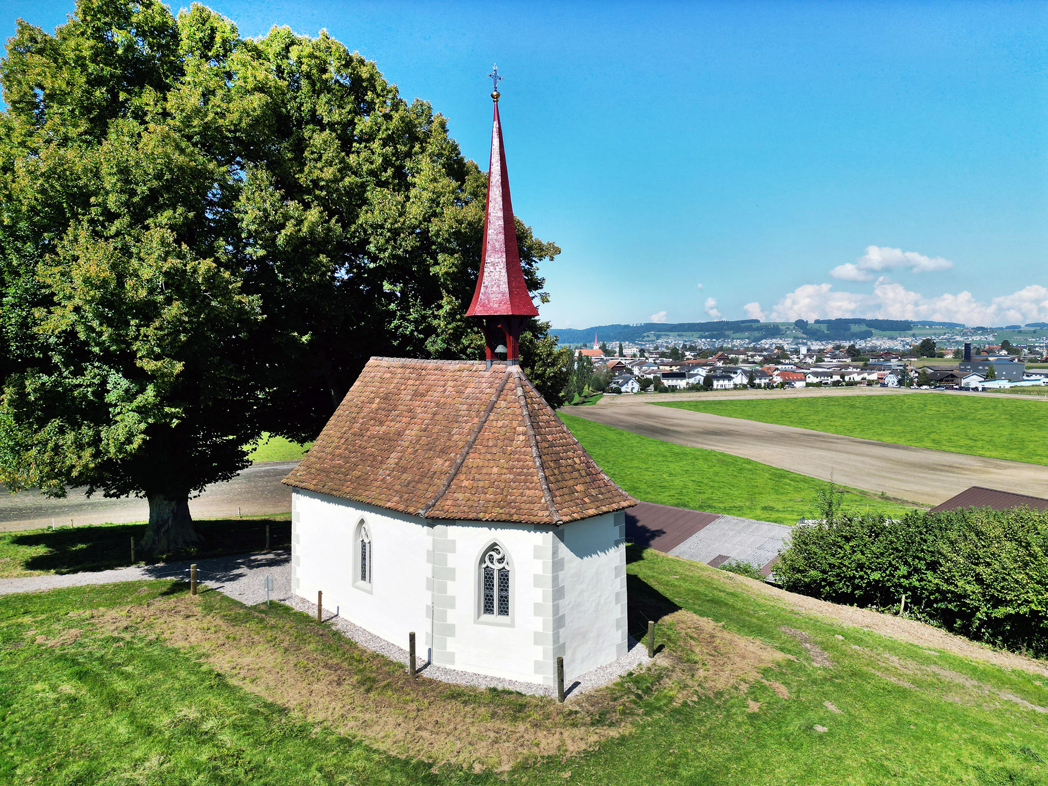 Oberhalb des Wasserschlosses Wyher steht, beschützt von zwei mächtigen Linden, eine spätgotische Kapelle. Sie wurde 1592 vom «Schweizerkönig» Ludwig Pfyffer gestiftet, dem damaligen Besitzer des Schlosses. Neben ihrem malerischen Äusseren mit Dachreiter und Madonnenbild beeindruckt die Kapelle im Innern unter anderem durch einen frühbarocken Altar und Fresken aus dem frühen 17. Jahrhundert. Nach einer umfassenden Restaurierung, die im Herbst 2024 abgeschlossen wurde, erstrahlt das sakrale Kleinod in neuem altem Glanz.