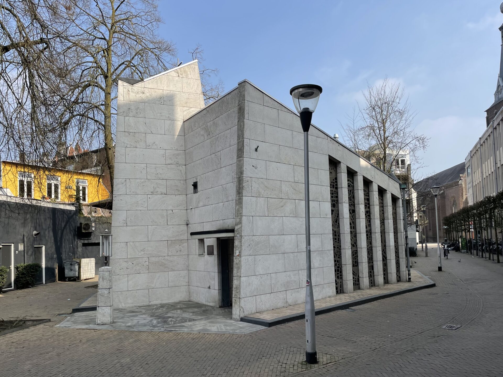 Architect: Jos Schijvens (1908-1966). In 1942 namen Jan Bergmans en Alphonsus Janssens het plan op zich om als de stad gespaard zou blijven in de Tweede Wereldoorlog, na afloop daarvan een Mariakapel te gaan bouwen. Een geldinzamelingsactie bracht voldoende middelen op om in 1949, bij gebrek aan bouwmaterialen, een noodkapel in te richten in een leegstaand pand aan de voormalige Zomerstraat. Dat gebouw was van 1834-1874 een Joodse synagoge. Bij de sanering van de binnenstad werd dit pand in 1965 gesloopt. De Stichting Gilde Onze Lieve Vrouw ter Nood liet een nieuwe kapel bouwen aan de huidige Kapelhof. Architect Jos Schijvens, die eerder de noodkapel verbouwde, kreeg de opdracht deze nieuwe kapel te ontwerpen. De kapel is in 1964 ingezegend. Bij zijn ontwerp liet Schijvens zich inspireren door het opstaan uit de dood. Het exterieur stelt kruiende ijsschotsen voor. Het idee van ‘ijs’ wordt versterkt door het gebruik van Italiaans travertin. De zevendelige glas-in-betonramen zijn van de hand van kunstenaar Daan Wildschut (1913-1995) uit Bunde. De voorstelling is die van Maria met haar Kind, die Tilburg beschermt tegen de draak, symbool voor het oorlogsgeweld. In de linkerbovenhoek is het wapen van Tilburg afgebeeld. In de kapel ligt een herdenkingsboek met de namen van in de oorlog omgekomen Tilburgers. Iedere dag wordt een pagina omgeslagen. Er hangen twee plaquettes die verband houden met de Tweede Wereldoorlog, een uit 1984 ter ere van verzetsstrijder Coba Pulskens (1884-1945), en een die herinnert aan vijftig jaar bevrijding van Tilburg (1994). Het vijftiende-eeuwse Mariabeeld is afkomstig uit het Rijnland en het is in 1945 geschonken door John Swagemakers uit Berkel-Enschot. Het huidige kroontje is in 1978 vervaardigd door W. Kloosterman Kunst- en Siersmeedwerk.