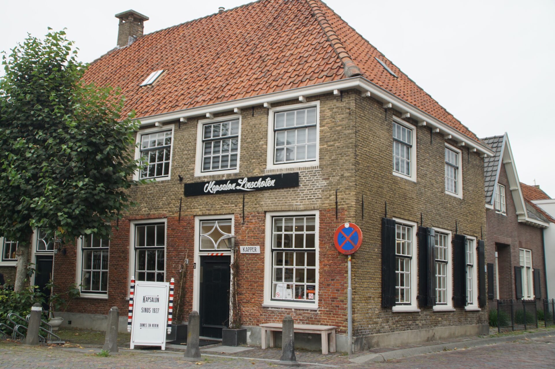 De twee tegenover elkaar gelegen huizenblokken Dorpsstraat 28-30 en 32-34 (Rechthuis) vormen samen de bebouwing van het dorpsplein van Linschoten. Door de symmetrische aanleg heeft het pleintje, dat uitkomt op de brug over de Lange Linschoten, architectonische allure. Toch is de historie van beide huizenblokken verschillend. De Rechtkamer in het Rechthuis dateert uit 1585, en het oostelijk deel werd aangebouwd in de tweede helft van de 17de eeuw. Het tegenovergelegen blok met particuliere woonhuizen, nr. 28-30, dateert uit de eerste helft van de 18de eeuw. Bewust werd gekozen voor een symmetrische aanleg in samenhang met de bebouwing aan de overzijde Tot 1879 vormden de huizen een geheel, bestaande uit een begane grond, een verdieping en een zolder. Net als de overzijde heeft het huis aan de achterzijde een waterstoep. Het westelijk deel heeft daardoor een afwijkende indeling gekregen met een verdiepte keuken met een opkamer daarboven. In dit gedeelte bevinden zich nog resten van een 17de-eeuwse voorganger. Toen dit bouwdeel in de 18de eeuw onder een kap werd gebracht met de rest van het huis, werden in de hoge borstwering onder de kap een paar lage vensters aangebracht. Achter de ingang geeft een klein portaal rechts toegang tot de woonkamer. Van daaruit zijn de kelderkeuken en opkamer via trapjes te bereiken. In de scheidingswand bevonden zich vroeger de bedsteden. Ertegenover ligt de stookplaats.