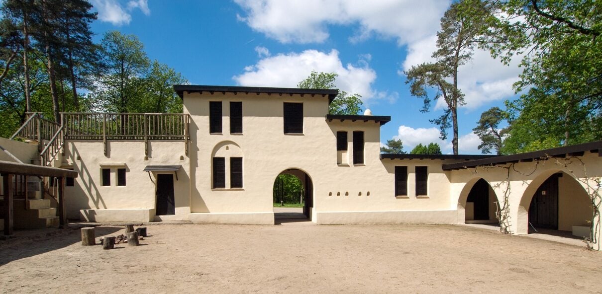 Karavanserai Piet Gerrits, 1923 De Karavanserai is een oosterse herberg en werd gebouwd naar voorbeeld van eenzelfde gebouw in Jordanië. Het sterk naar binnen gekeerde gebouw met zijn gesloten buitengevels bood beschutting en bescherming aan de mensen en dieren van een karavaan, reizen was immers gevaarlijk. Ze lagen dan ook langs handelsroutes in Arabische steden en in de woestijn. De slaapkamers voor de welgestelden bevonden zich op de tweede verdieping waar dieren vanwege de oneven treden niet konden komen. Benieuwd naar hoe erfgoed leeft op Museumpark Orientalis? Kom dan langs en ontdek dat erfgoed méér is dan alleen steen. In het kader van de Open Monumentendag is Museumpark Orientalis op zondag gratis toegankelijk. Parkeermunten blijven €5 kosten.