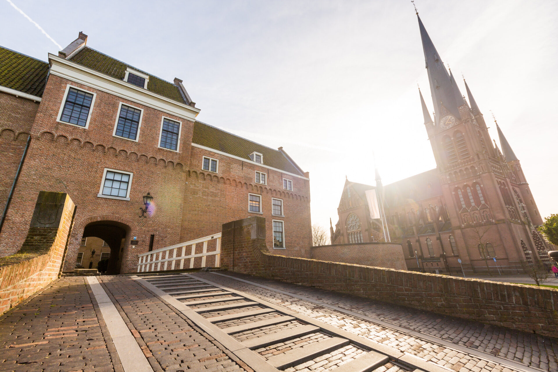Het Kasteel van Woerden is het meest imposante monument in Woerden Het Kasteel van Woerden is als burcht gebouwd door Hertog Jan van Beieren, heer van Woerden, in de jaren rond 1410. Het heeft een vierkante plattegrond, bestaande uit vier vleugels rond een binnenplaats. Op de hoeken bevinden zich ronde torens, waarvan er drie sterk zijn verlaagd, terwijl de vierde door een gevangenis is vervangen. Het kasteel was vroeger geheel door water omgeven en een ophaalbrug diende als toegang. In de loop van de jaren heeft het kasteel vele bestemmingen gehad. Onder andere huisvestte het verdedigingsbolwerk na de tachtigjarige oorlog lange tijd de baljuw van het land van Woerden en dijkgraaf van het Grootwaterschap van Woerden. In het jaar 1787 vergaderde er de Commissie van Defensie. Dit militair burgercomité (bestaande uit patriotse regenten) probeerde met behulp van vrijkorporisten en beroepsmilitairen het gewest Holland te verdedigen tegen aanvallen van de prinsgezinden. Het kasteel heeft eveneens vele jaren als gevangenis gediend. Van 1795- 1798 als staatsgevangenis, daarna tot 1800 als hospitaal voor Engelse en Russische soldaten. Tot 1811 stond het kasteel leeg en werd dan hospitaal voor Franse militairen tot 1812. In 1814 werd er een aantal Franse krijggevangenen opgesloten. Van 1818-1824 had het kasteel de bestemming van militaire strafgevangenis voor maximaal 450 personen. Daarna, van 1830- 1860, is het kasteel gevangenis voor “criminele manspersonen” en verblijven er wel eens meer dan 500 gevangenen. In 1861 wordt het gebouw gevangenis voor “criminele vrouwspersonen” onder andere in de bij de restauratie inmiddels gesloopte lage westvleugel (kerkzijde). In 1872 houdt Woerden op gevangenisstad te zijn. Het jaar daarop krijgt het kasteel met een aantal bijgebouwen de bestemming van “Centraal Magazijn van kleding en uitrusting” van het Ministerie van Oorlog. Ondanks allerlei naamswijzigingen die in het verleden hebben plaatsgehad, spreekt men in de volksmond nog steeds van “het magazijn”. Tot aan de huidige restauratie is deze bestemming van het kasteel gebleven, want in de loop der eeuwen heeft het gebouw vele verbouwingen en restauraties gekend. De voorvleugel is nog het best in tact gebleven. In 1887 restaureerde men de voorvleugel waarbij de al aanwezige pleisterlaag onaangetast bleef. Deze verdween na veel heen en weer geschrijf ten slotte tegelijk met het voor de voorvleugel nog aanwezige wachthuis in 1937. Tijdens de “magazijnperiode” werd de voorvleugel bewoond door de diverse commandanten, ook in de periode 1940-1945. Nadien werd het gebouw nog bewoond door een huisbewaarder en werd het vooral opslagplaats. In de jaren zeventig kwam een brede gedachtenwisseling op gang over de uiteindelijke bestemming van het gebouw, wat resulteerde in de oprichting van de “Stichting het Kasteel van Woerden” met als doel “het behouden, restaureren en exploiteren van het gebouw”. De Stichting Het Kasteel van Woerden verhuurt het kasteel aan de Stichting Vrienden van het Kasteel. Deze stichting verhuurt het Kasteel door aan Abrona en Restaurant Grand Kasteel. Abrona beheert in het Kasteel sinds november 2006 28 appartementen gerealiseerd voor mensen met een verstandelijke beperking.