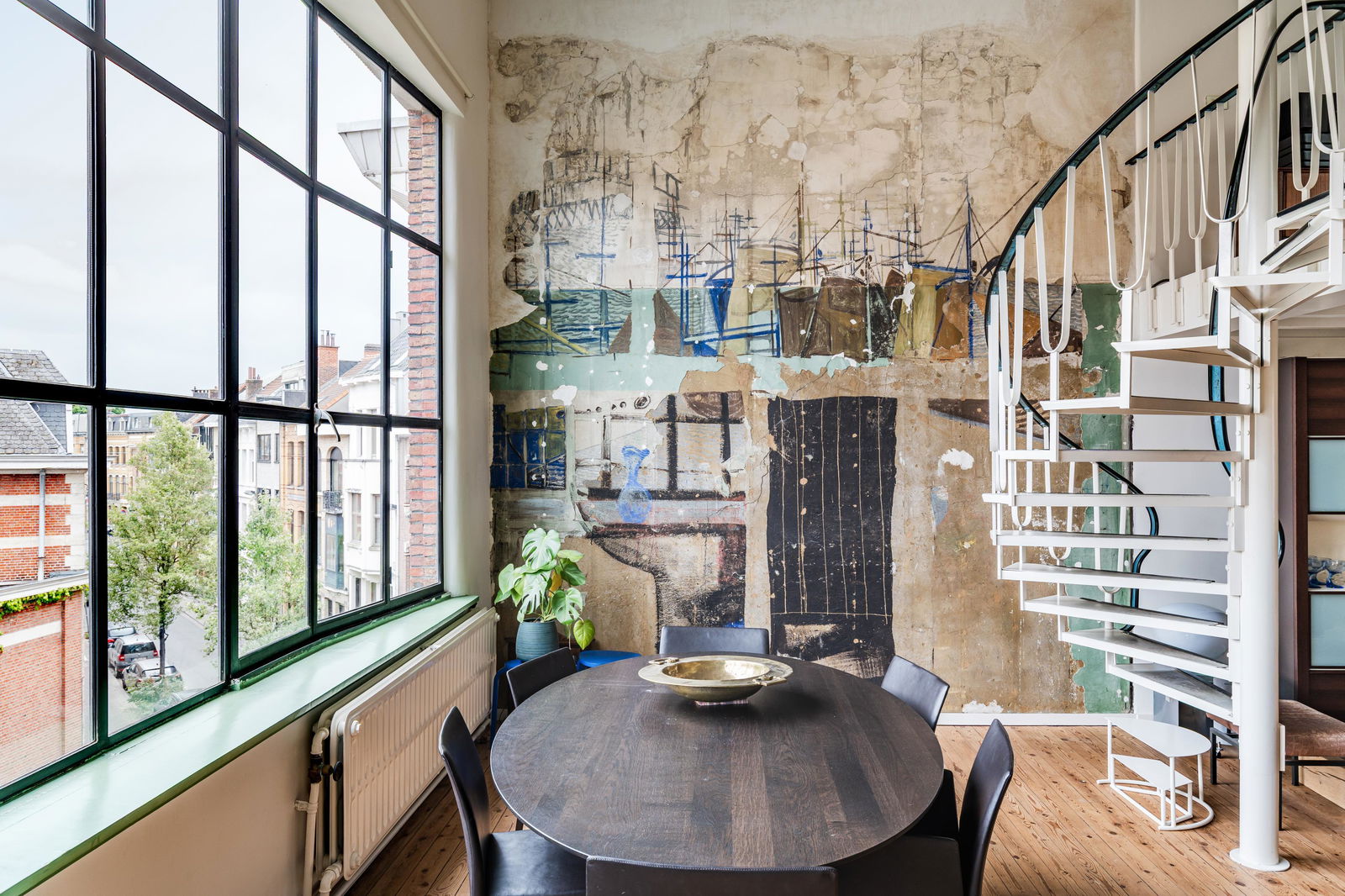 Deze woning uit 1909 werd gebouwd voor beeldhouwer Georges Geefs. Ze werd in de jaren 1920 volledig hertekend door kunstenaar Floris Jespers en architect Frits De Mont. Met bijdragen van onder meer Huib Hoste, Leon Stynen en Paul Van Ostaijen groeide het huis uit tot een lichtovergoten en functioneel kunstenaarsatelier. Na jaren van verwaarlozing werd het pand met veel zorg en visie gerestaureerd. De huidige eigenaar koos bewust voor een duurzame aanpak, met gebruik van recuperatiematerialen. De restauratie is geen nostalgische reconstructie maar een hedendaagse interpretatie van het modernistisch gedachtegoed. Blikvanger zijn de herontdekte muurschilderingen van Floris Jespers.