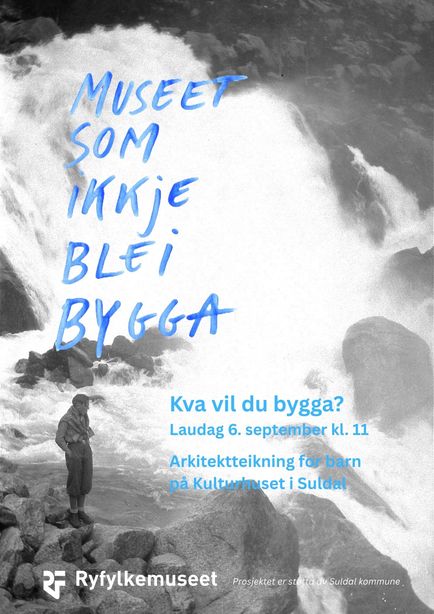 Pop-up utstillinga Museet som ikkje blei bygga inviterer alle barn til å teikna sitt eiget draumebygg. Kva tykkjer du me treng av nye bygg i Suldal? Du kan dra inspirasjon frå utstillinga av Sverre Fehn sine skisser til det som skulle bli Norsk Vassdragsmuseum på Sand i Suldal. Museet skulle løfta fram vassdragskulturen og vasskrafta si rolle i utviklinga av lokalsamfunnet. Prosjektet fekk brei merksemd og var tenkt som eit landemerke for både Suldal, vasskrafta og for norsk arkitekturhistorie. Likevel vart planane aldri realiserte.