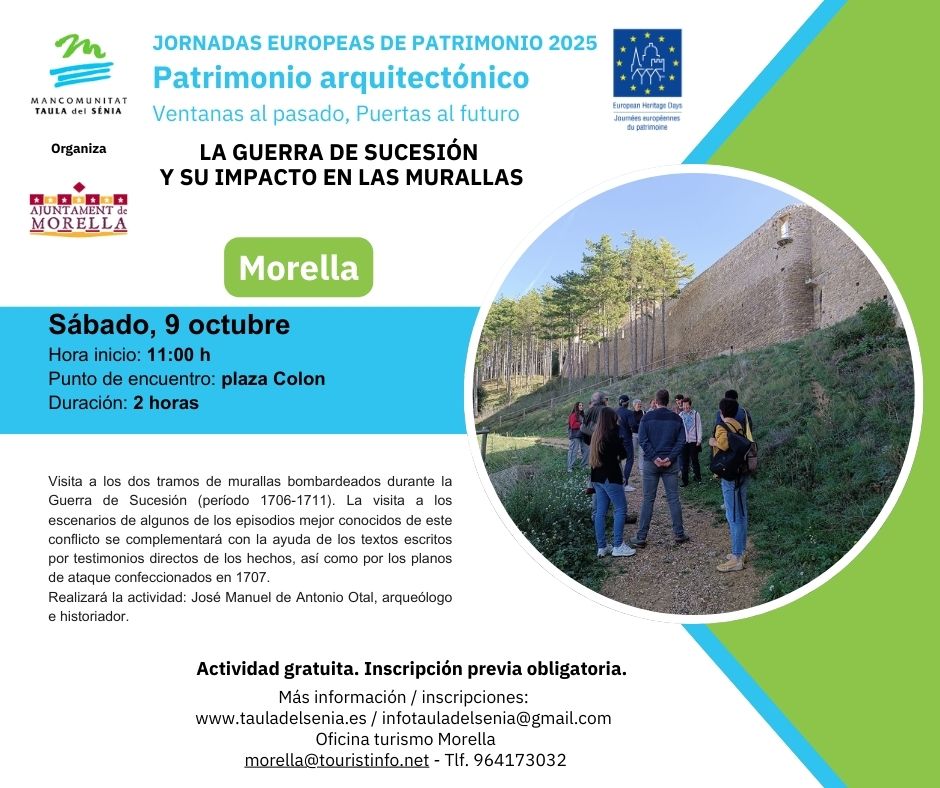 Visita a los dos tramos de murallas bombardeados durante la Guerra de Sucesión (período 1706-1711). La visita a los escenarios de algunos de los episodios mejor conocidos de este conflicto se complementará con la ayuda de los textos escritos por testimonios directos de los hechos, así como por los planos de ataque confeccionados en 1707.