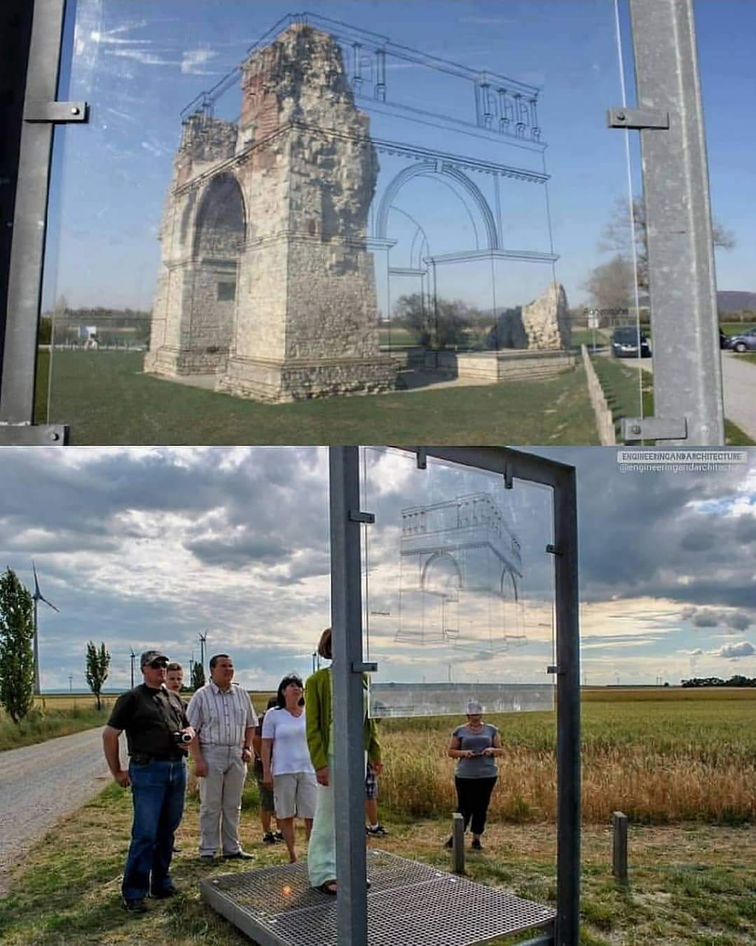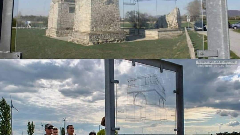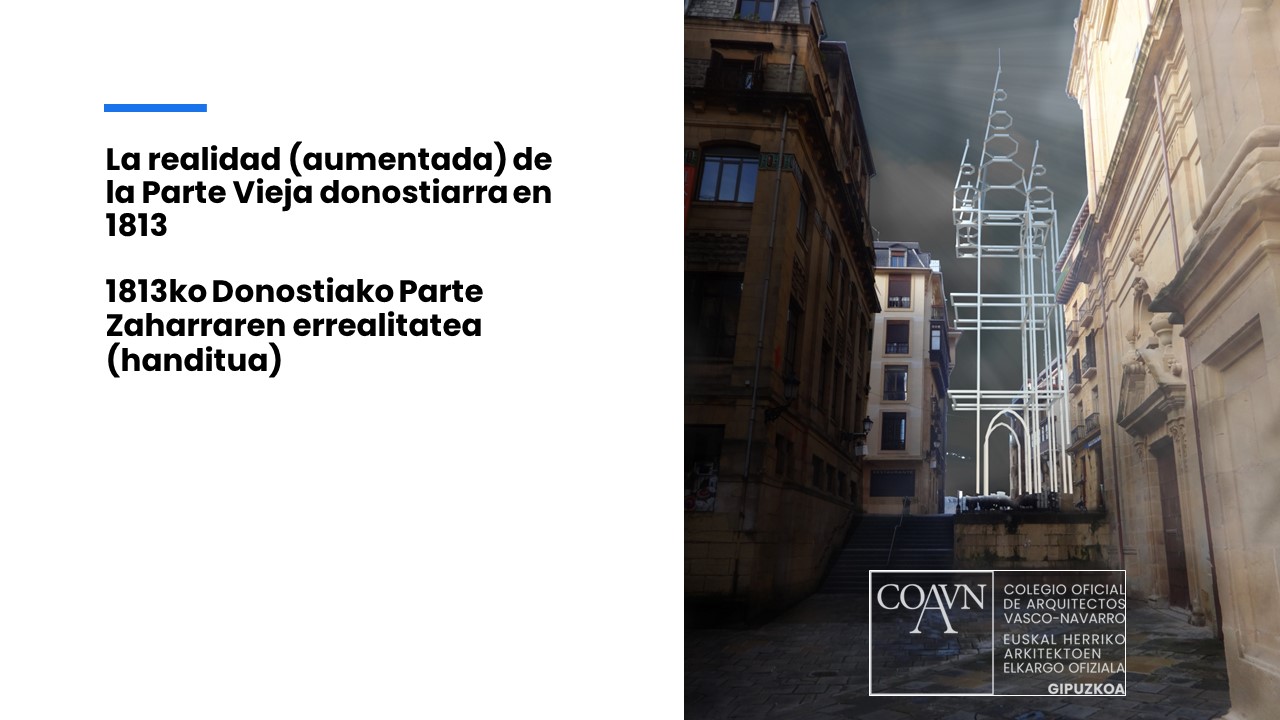 To replicate on a transparent polycarbonate base two buildings that have disappeared - the Bell Tower and the Town Hall - so that they can be represented virtually in their respective places in the Old Part of Donostia. A graphic representation drawn on transparent supports that allow the citizen, when standing at a specific point, to see, superimposed on the real existing buildings, what the disappeared buildings looked like, with a very real perception.