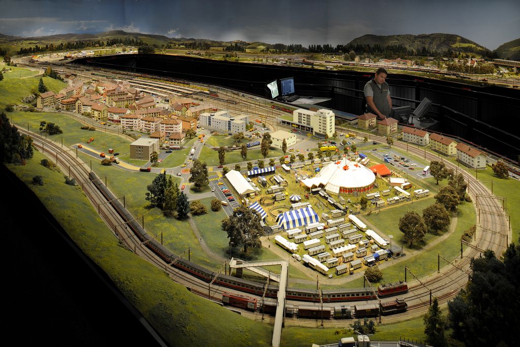 Découvrez une maquette de plus de 600 m2 où le train est l’élément central des interactions humaines en circulant dans des décors et des lieux variés. L’action se déroule un vendredi d’automne des années 1990 à 11h, quelque part en Suisse alémanique et dans les Grisons. Dans ce panorama féérique, un nombre impressionnant de trains circulent simultanément. 6’500 figurines donnent l’illusion de voyager et de vivre en ville ou à la campagne.